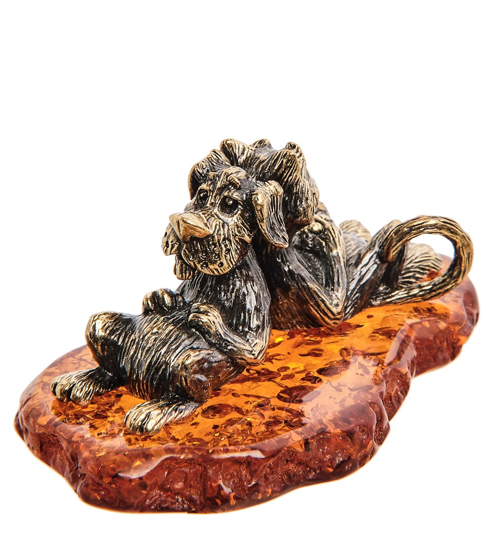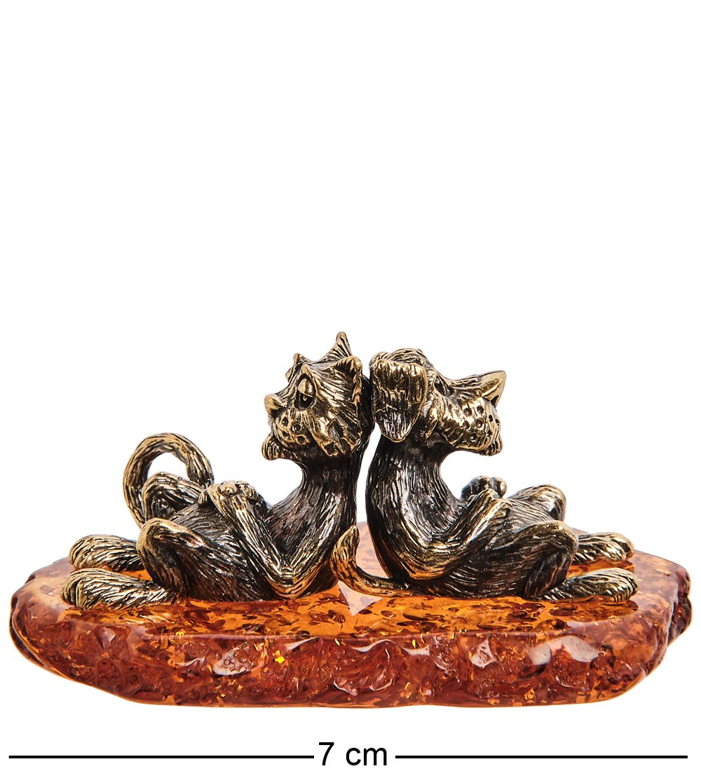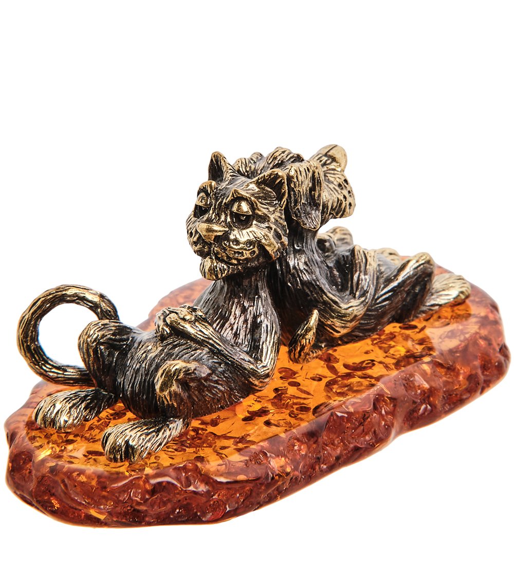 Am-3091 фигурка «кот и пес жизнь удалась» (латунь, янтарь)
