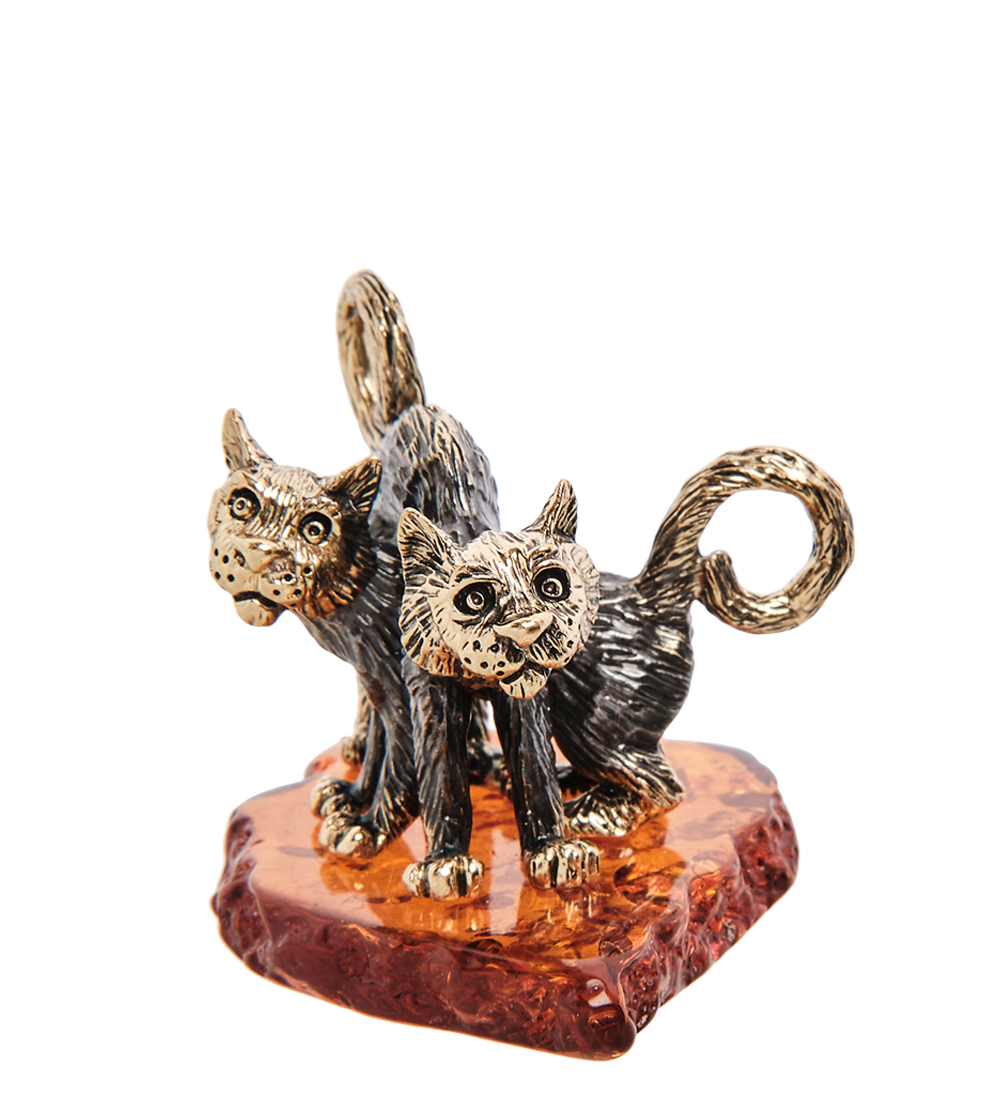 Am-3107 фигурка «коты парочка твикс» (латунь, янтарь)