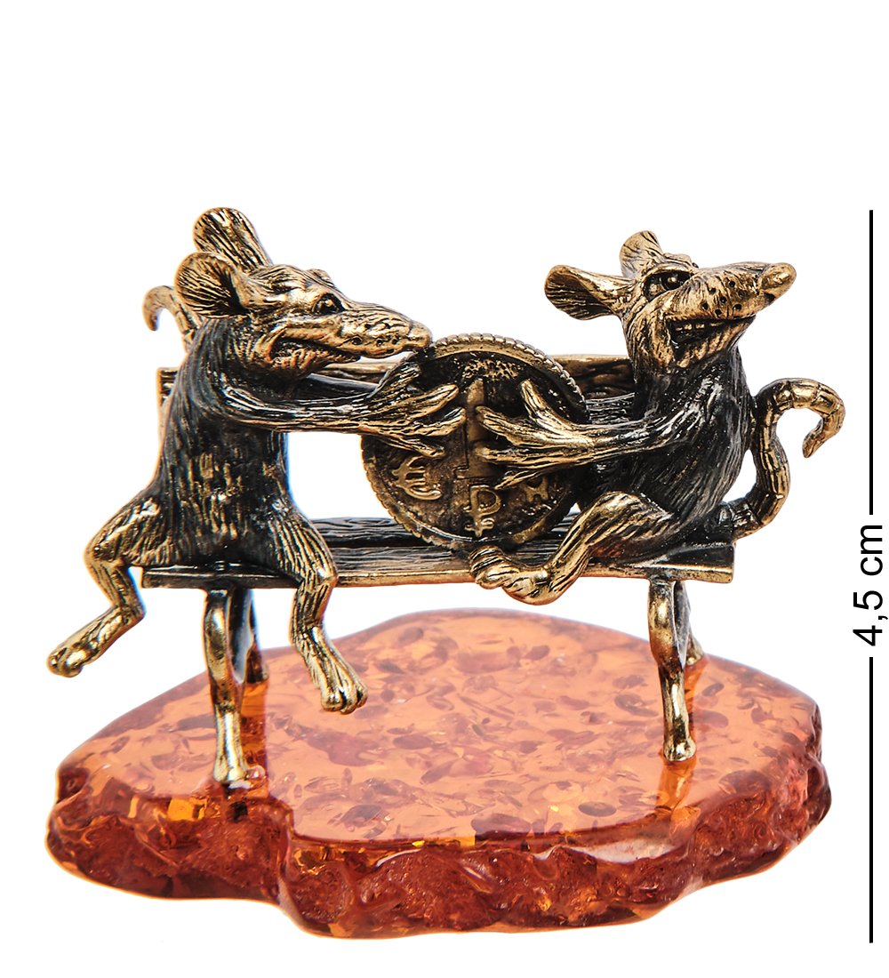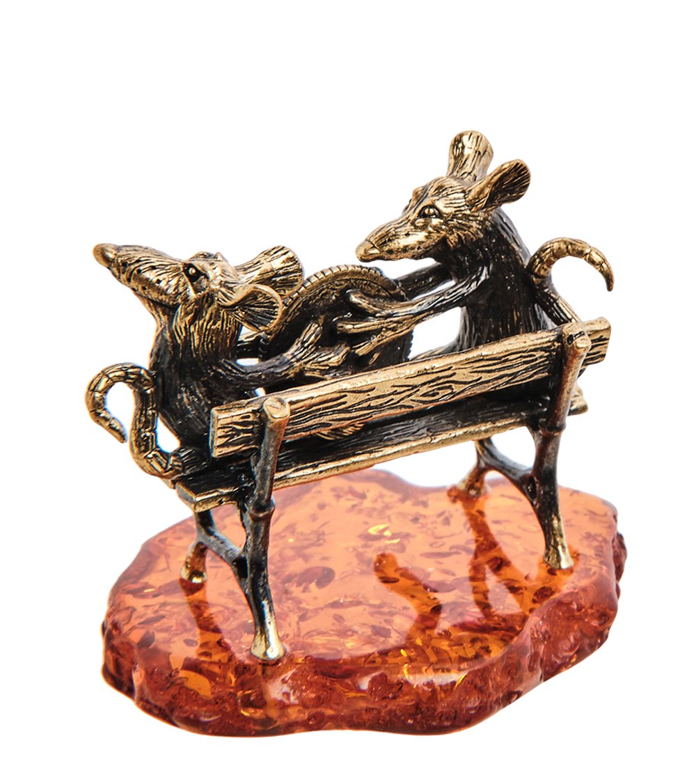 Am-3115 фигурка «мыши с рублем на скамейке» (латунь, янтарь)