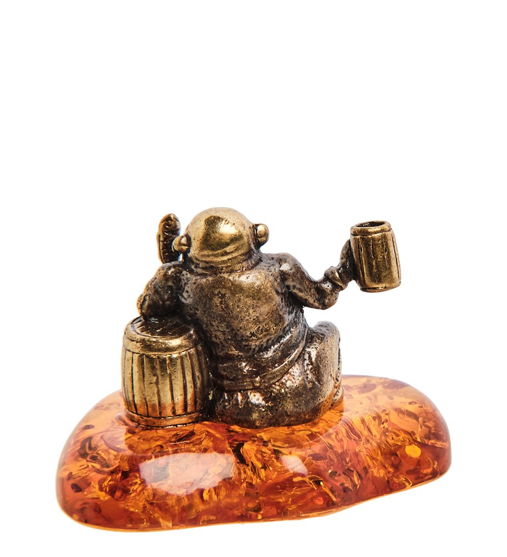 Am-3122 фигурка «любитель пива» (латунь, янтарь)