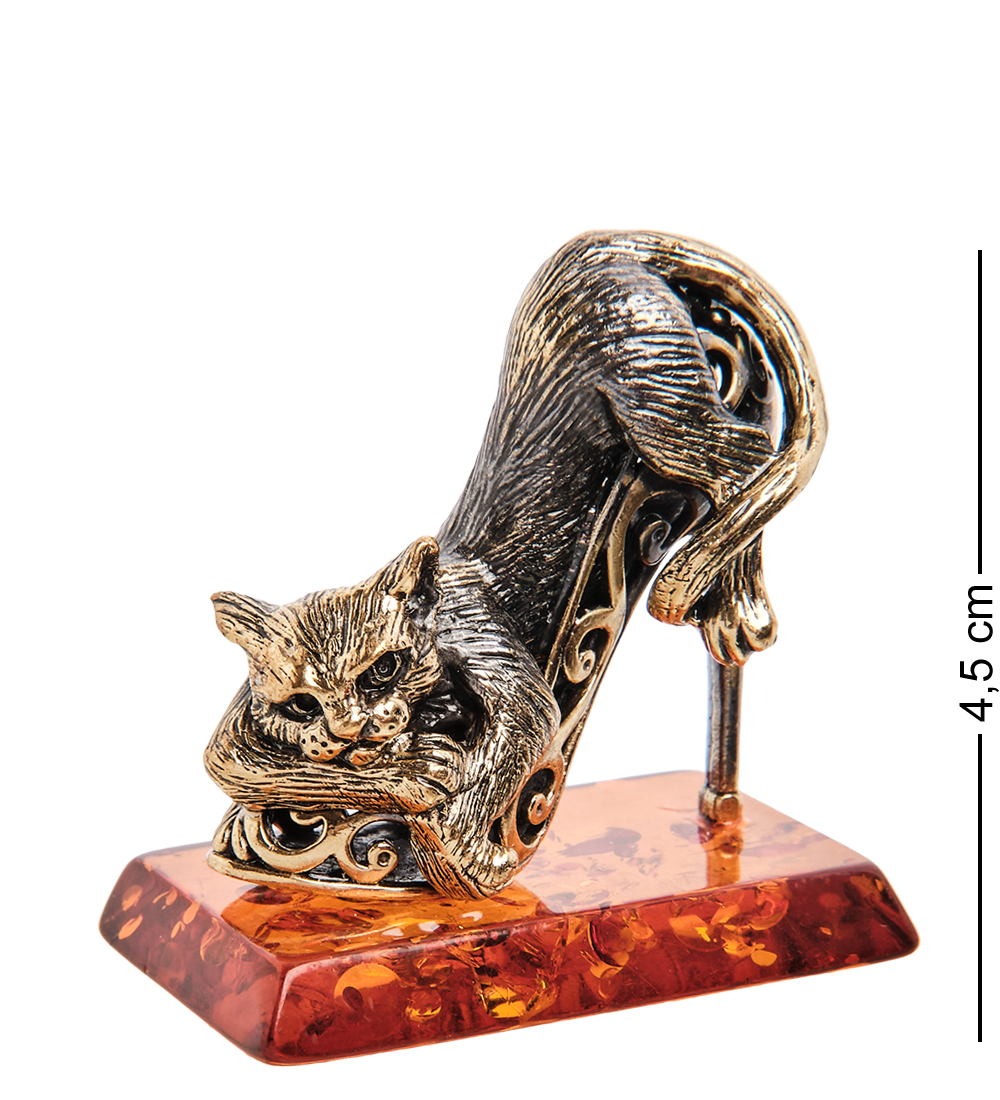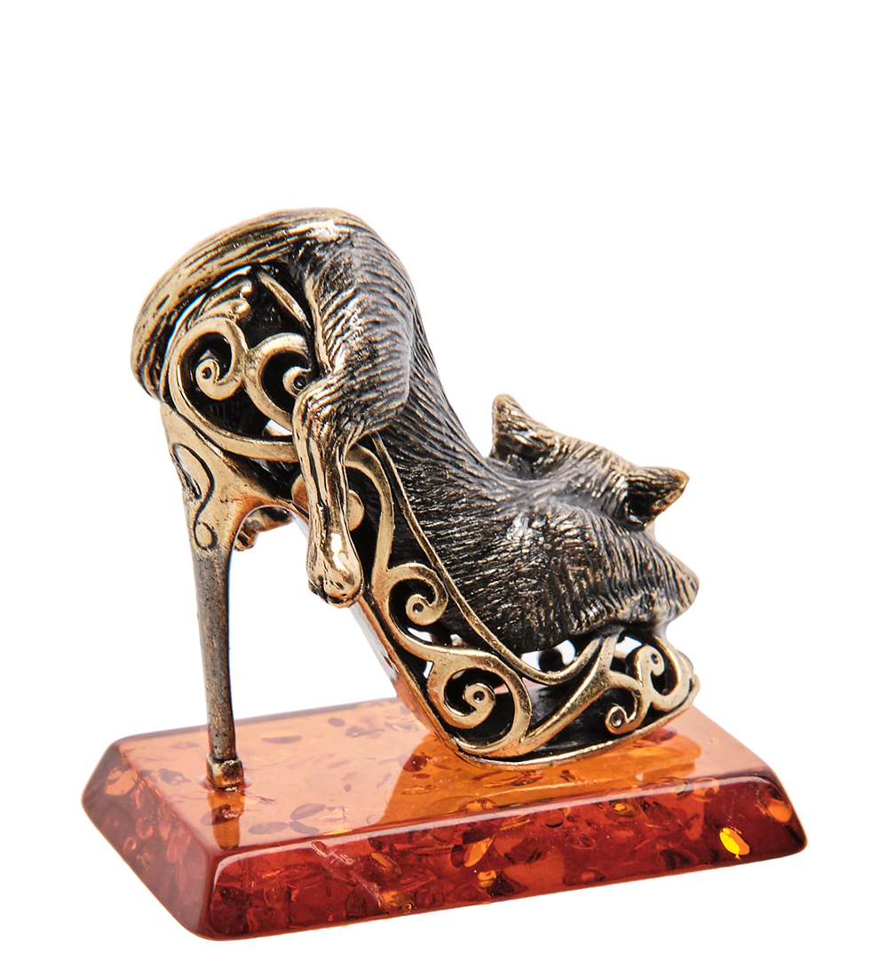 Am-3144 фигурка «кот на туфельке» (латунь, янтарь)