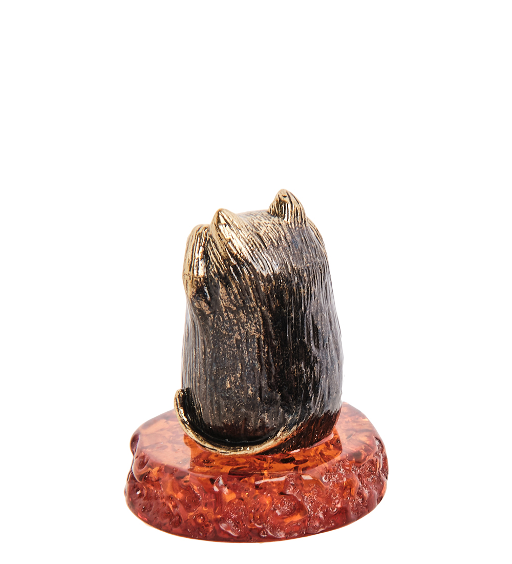 Am-3157 фигурка «кот не слышу» (латунь, янтарь)