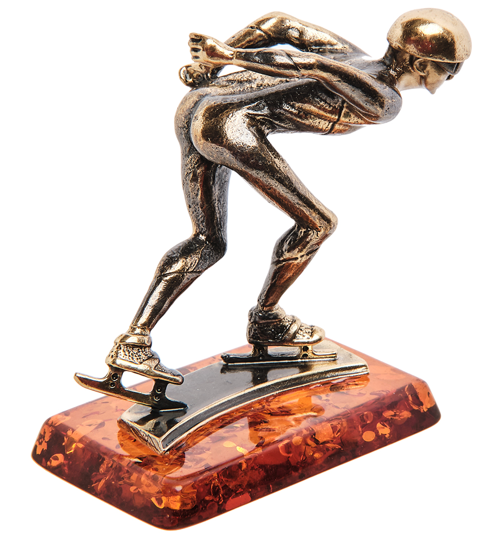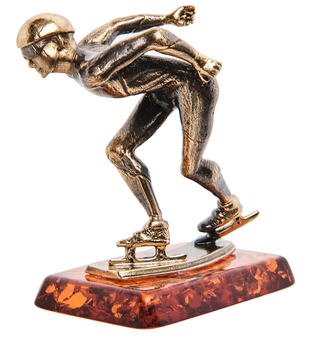 Am-3207 фигурка «конькобежец» (латунь, янтарь)