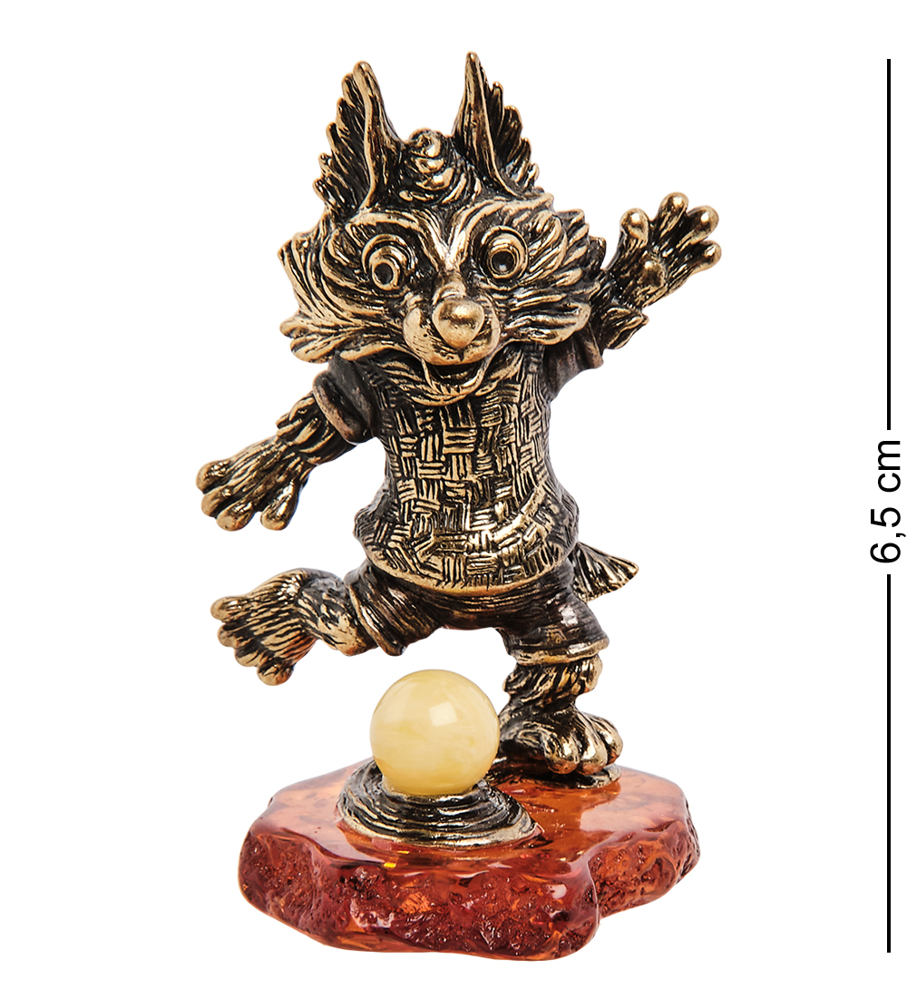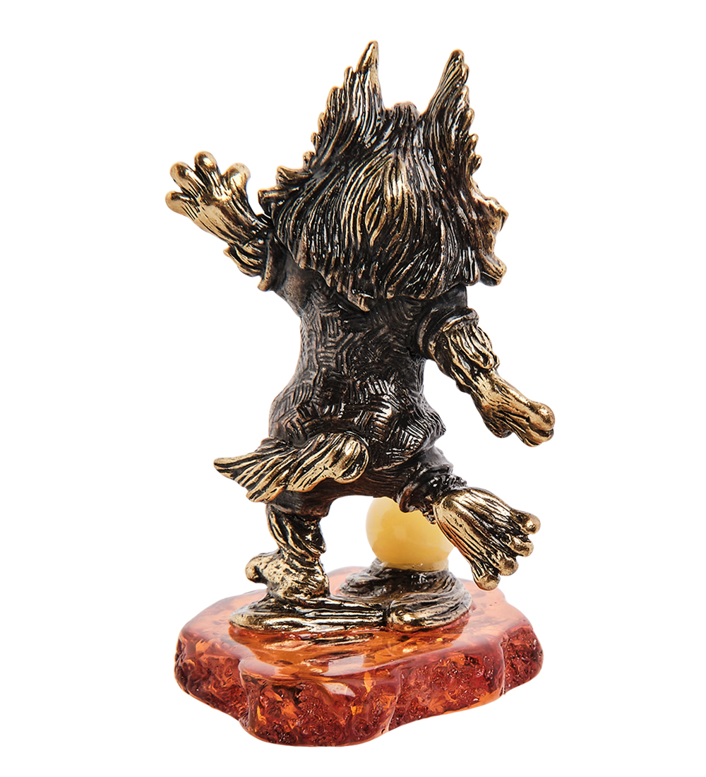 Am-3209 фигурка «собака футболист» (латунь, янтарь)