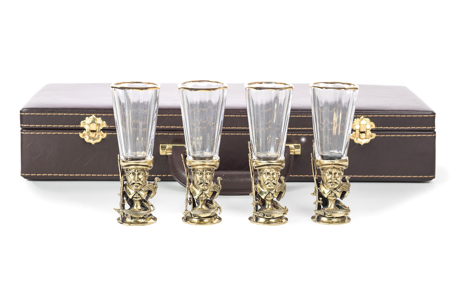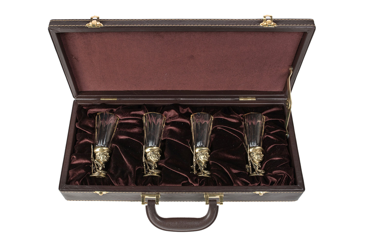 Лафитник с охоты на рыбалку 4 шт (уп.кожа)