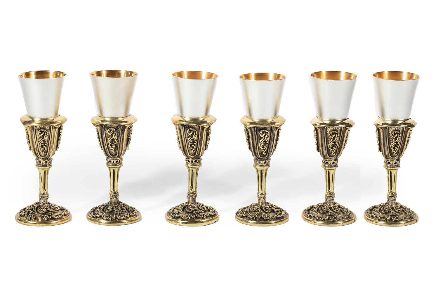 Комплектация: 6 рюмок, основание (латунь), мстера
