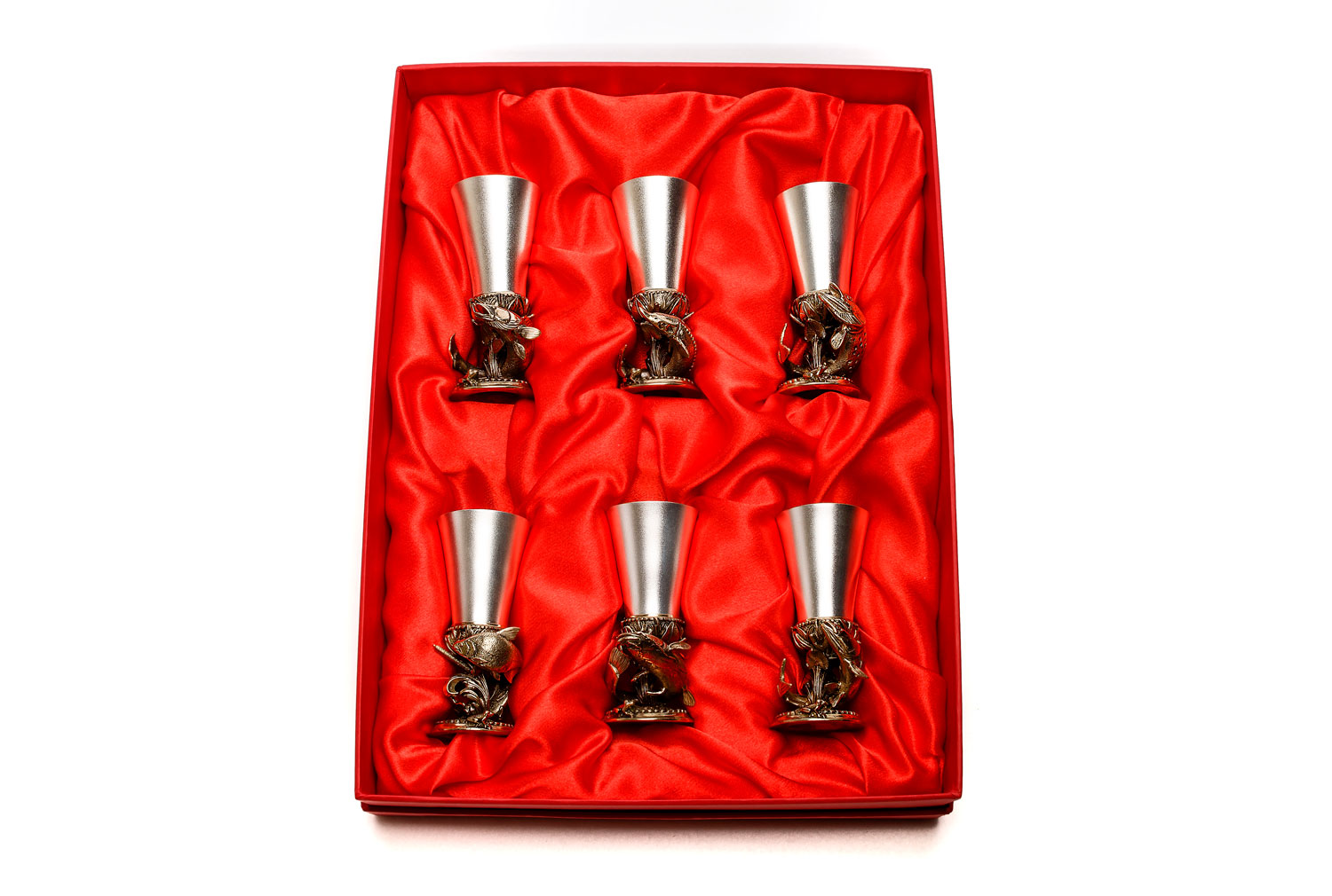 Комплектация: 6 рюмок, основание (латунь), мстера
