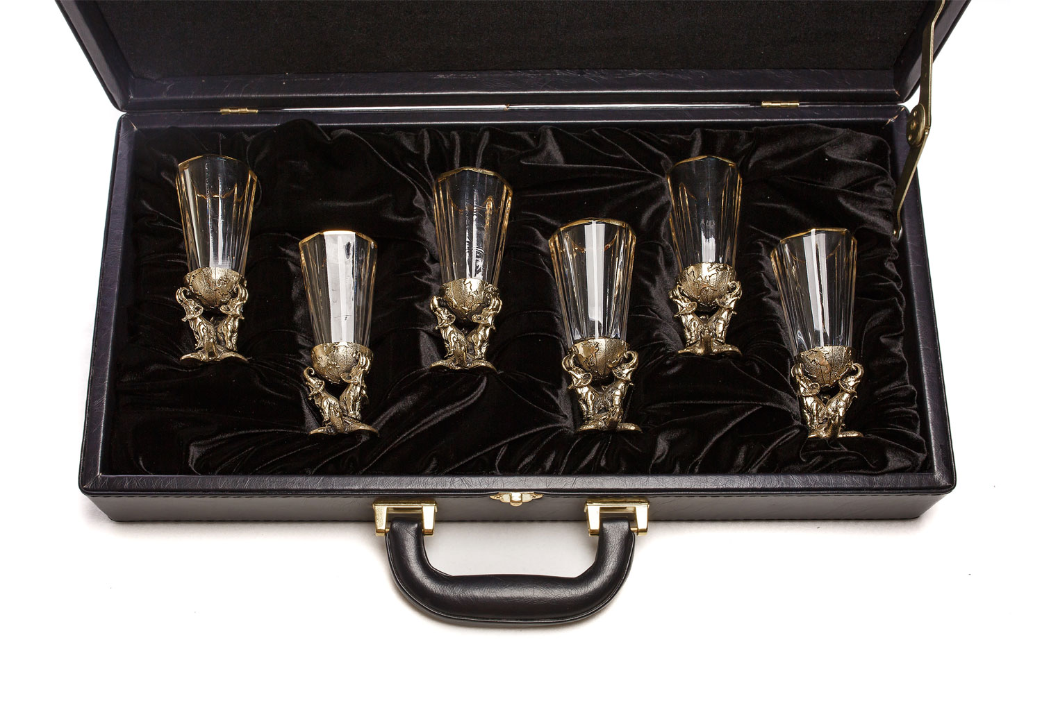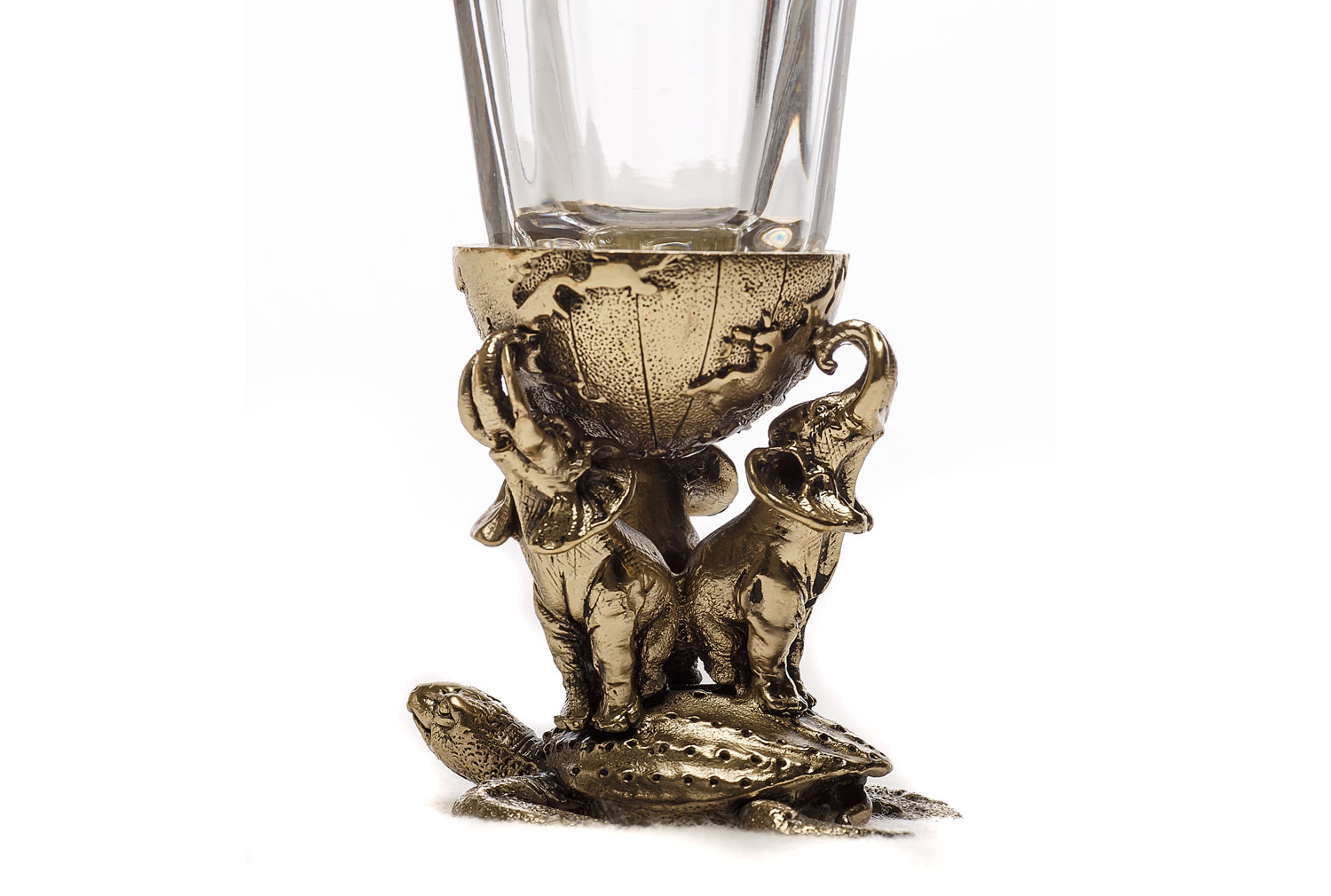 Набор рюмок «Слоны» соединяет в себе две эпохи. Это делает комплект уникальным и изящным подарком для настоящего мужчины. С давних пор считалось, что данное животное священное. Его изображение символизирует мудрость, вечность, счастье и процветание.