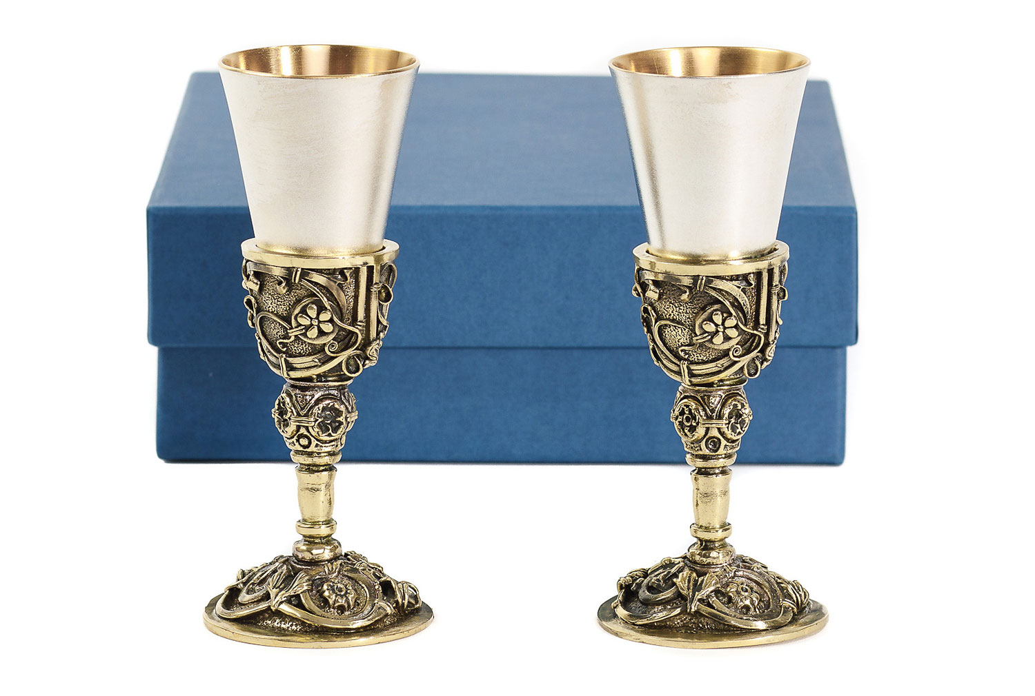 Лафитник цветок (мстера) 2 шт. Описание: Лафитный набор выполнен в традиционно русском стиле Мстера. Всего, на сегодняшний день, по всей стране насчитывается 33 мастера, которые работают с ним. Если вы хотите получить такой подарок или презентовать его близкому человеку – заказывайте набор прямо сейчас, варианты упаковки и количество рюмок представлены в широком ассортименте. Метод изготовления:  художественное литье из латуни (ручная работа) Рюмка: Мельхиор, Производитель: Мстерский Ювелир, Страна: Россия, Объем: 30 мл, Покрытие на 1 изделие: Серебра 2,97г, Золота 0,06г Комплектация: 2 рюмки, основание (латунь) Упаковка:  дизайнерский картон, ложемент: атлас