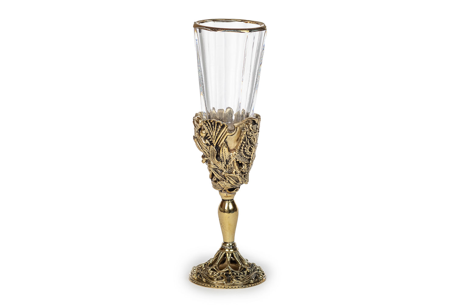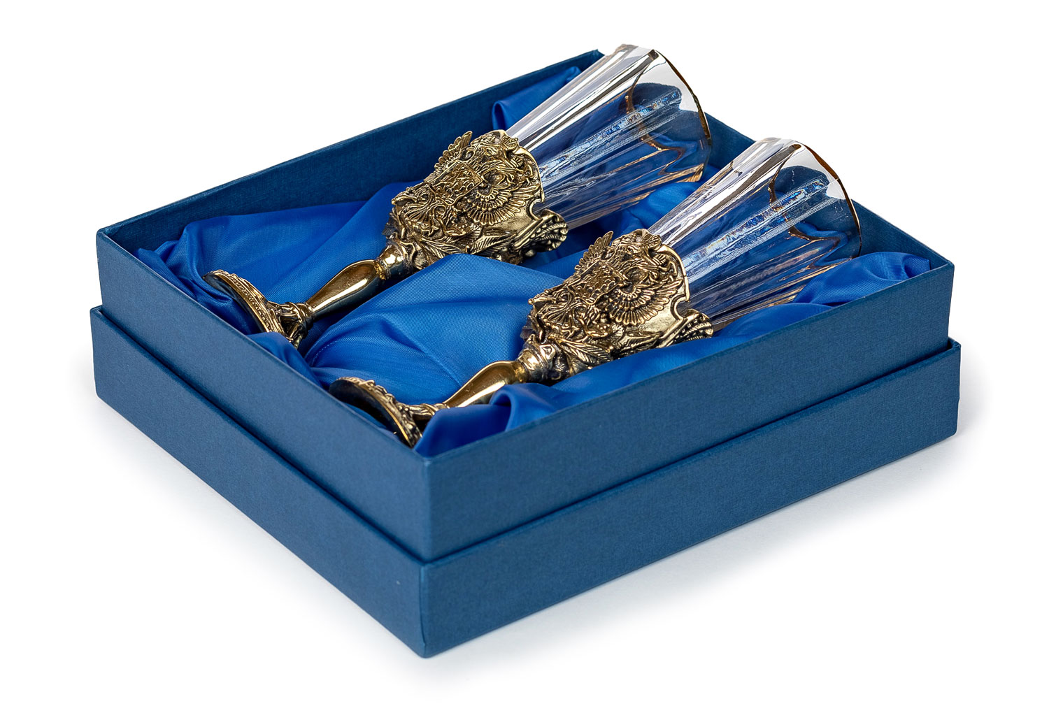 Лафитник герб 2 шт. Метод изготовления: художественное литье из латуни (ручная работа) Рюмка: Хрусталь, Производитель: Бахметьевский завод, Страна: Россия, Объем: 50 мл Комплектация: 2 рюмки, основание (латунь) Упаковка: дизайнерский картон, ложемент: атлас