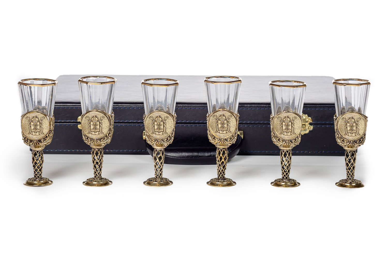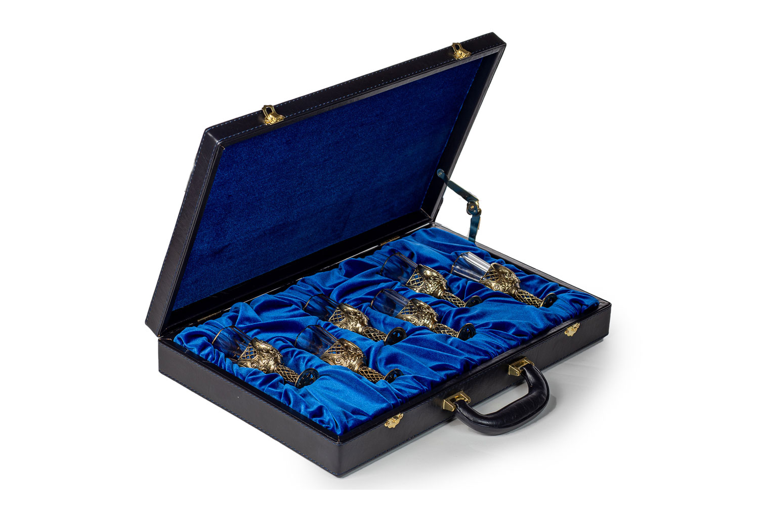Лафитник санкт-петербург 6 шт (уп. кожа). Описание: Собраться компанией, небольшой, человек так на шесть. Взять с собой хрустальные лафитники, любимый напиток, и отправиться покорять Питер. Петербург, Ленинград. Все называют его по-разному, но все одинаково любят его всей душой. Однажды познакомившись с с этим городом, любовь к нему поселится в вашем сердце навечно. nbsp Метод изготовления: nbsp художественное литье из латуни (ручная работа) Рюмка: Хрусталь, Производитель: Бахметьевский завод, Страна: Россия, Объем: 50 мл nbsp Комплектация: nbsp 6 рюмок, основание (латунь) Упаковка: nbsp кож.зам, ложемент: бархат