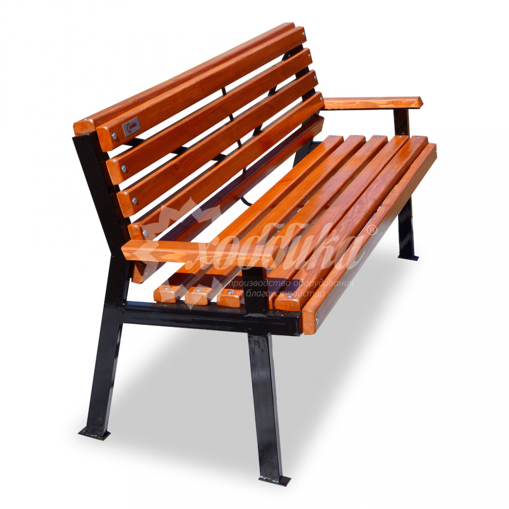 Скамейка уличная «модерн» 1,2 м. Подробные характеристики Скамейка поставляется в разобранном виде! Материалы: Опоры: Cталь. Покрыты порошковой полимерной краской. Возможность выбора цвета по каталогу RAL. Стандартный цвет (по умолчанию) - черный. Сиденье и спинка: Брус из хвойных пород древесины - ангарская сосна (варианты исполнения: лиственница, композитные материалы) различного сечения. Огнебиозащитные пропитки + тонировочный состав с антисептиком + два слоя яхтного лака с промежуточным шлифованием. Возможность выбора цвета из палитры. Фурнитура: Оцинкованная. Возможность выбора цвета фурнитуры по каталогу RAL. Стандартный цвет (по умолчанию) - серебристый. Возможность использования потайной/скрытой фурнитуры. Технические характеристики: Высота: 800 мм Ширина: 570 мм Длина: 600 - 3000 мм Высота сиденья: 470 мм Ширина сиденья: 400 мм Длина посадочного места: 600 - 3000 мм Вес версии 0.6 м: 16 кг Вес версии 1.2 м: 22,5 кг Вес версии 1.5 м: 25,4 кг Вес версии 1.8 м: 28,3 кг Вес версии 2.0 м (2 опоры): 30,2 кг Вес версии 2.0 м (3 опоры): 34,3 кг Вес версии 2.5 м (3 опоры): 40,2 кг Вес версии 3.0 м (3 опоры): 45 кг О модели Скамейка Модерн с деревянными подлокотниками обладает удобным посадочным местом. Деревянный подлокотник помимо эстетических свойств служит дополнительной опорой, преимущество которой оценят люди пожилого возраста. Скамейка Модерн может быть использована при необходимости создания обеденной группы в едином стиле. Вы можете дополнить скамейку широким садовым столом или удобным креслом, опоры которого выполнены в одном со скамейкой стиле. При необходимости вы можете воспользоваться услугами по сборке скамейки или заказать доставку скамейки в любую точку России. Варианты цвета на выбор: , махагон, палисандр, тик,