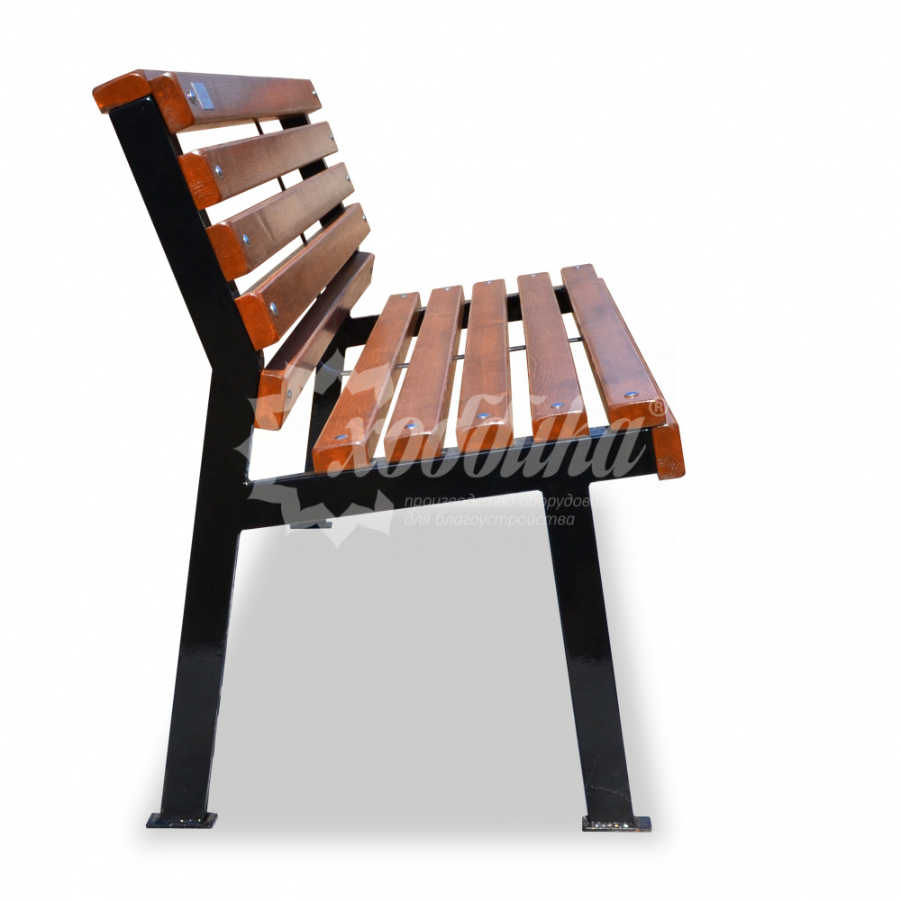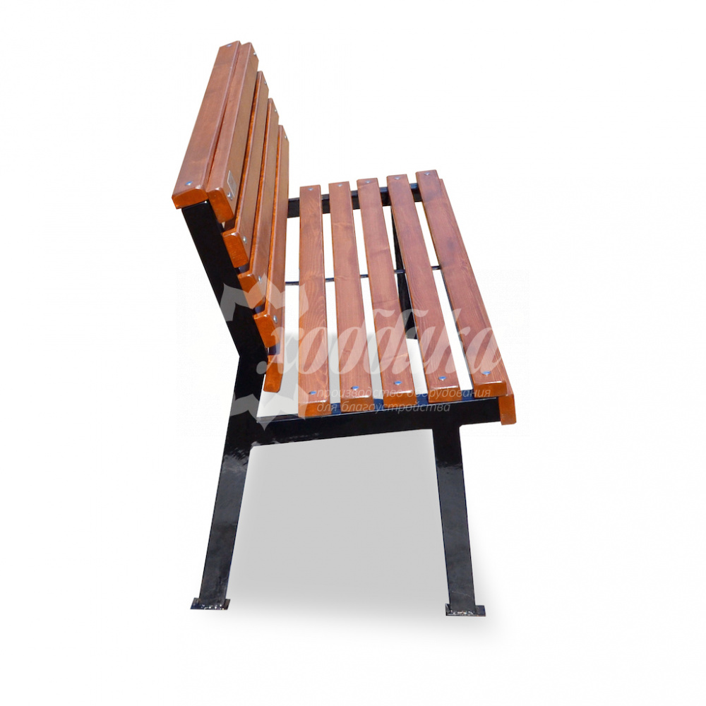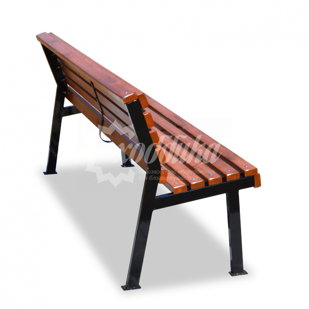Скамейка «модерн» без подлокотников 1,5 м. Подробные характеристики Скамейка поставляется в разобранном виде! Материалы: Опоры: Cталь. Покрыты порошковой полимерной краской. Возможность выбора цвета по каталогу RAL. Стандартный цвет (по умолчанию) - черный. Сиденье и спинка: Брус из хвойных пород древесины - ангарская сосна (варианты исполнения: лиственница, композитные материалы) различного сечения. Огнебиозащитные пропитки + тонировочный состав с антисептиком + два слоя яхтного лака с промежуточным шлифованием. Возможность выбора цвета из палитры. Фурнитура: Оцинкованная. Возможность выбора цвета фурнитуры по каталогу RAL. Стандартный цвет (по умолчанию) - серебристый. Возможность использования потайной/скрытой фурнитуры. Технические характеристики: Высота: 800 мм Ширина: 570 мм Длина: 600 - 3000 мм Высота сиденья: 470 мм Ширина сиденья: 400 мм Длина посадочного места: 600 - 3000 мм Вес версии 0.6 м: 14 кг Вес версии 1.2 м: 20,6 кг Вес версии 1.5 м: 23,5 кг Вес версии 1.8 м: 26,4 кг Вес версии 2.0 м (2 опоры): 28,3 кг Вес версии 2.0 м (3 опоры): 32,4 кг Вес версии 2.5 м (3 опоры): 38,2 кг Вес версии 3.0 м (3 опоры): 43 кг О модели Скамейка Модерн без подлокотников - одна из самых оригинальных скамеек, представленных на рынке МАФ и садовой мебели. Антивандальный металлический каркас обеспечивает устойчивость и защиту от ненадлежащего использования. Благодаря широкому металлическому профилю и деревянному брусу скамейка обладает достаточным запасом прочности, что гарантирует долговечное использование скамейки даже на открытом воздухе. В качестве увеличения антивандальных свойств скамейки Модерн наши специалисты предусмотрели возможность крепления скамейки при помощи анкерных болтов или бетонирования стойки. Варианты цвета на выбор: , махагон, палисандр, тик,