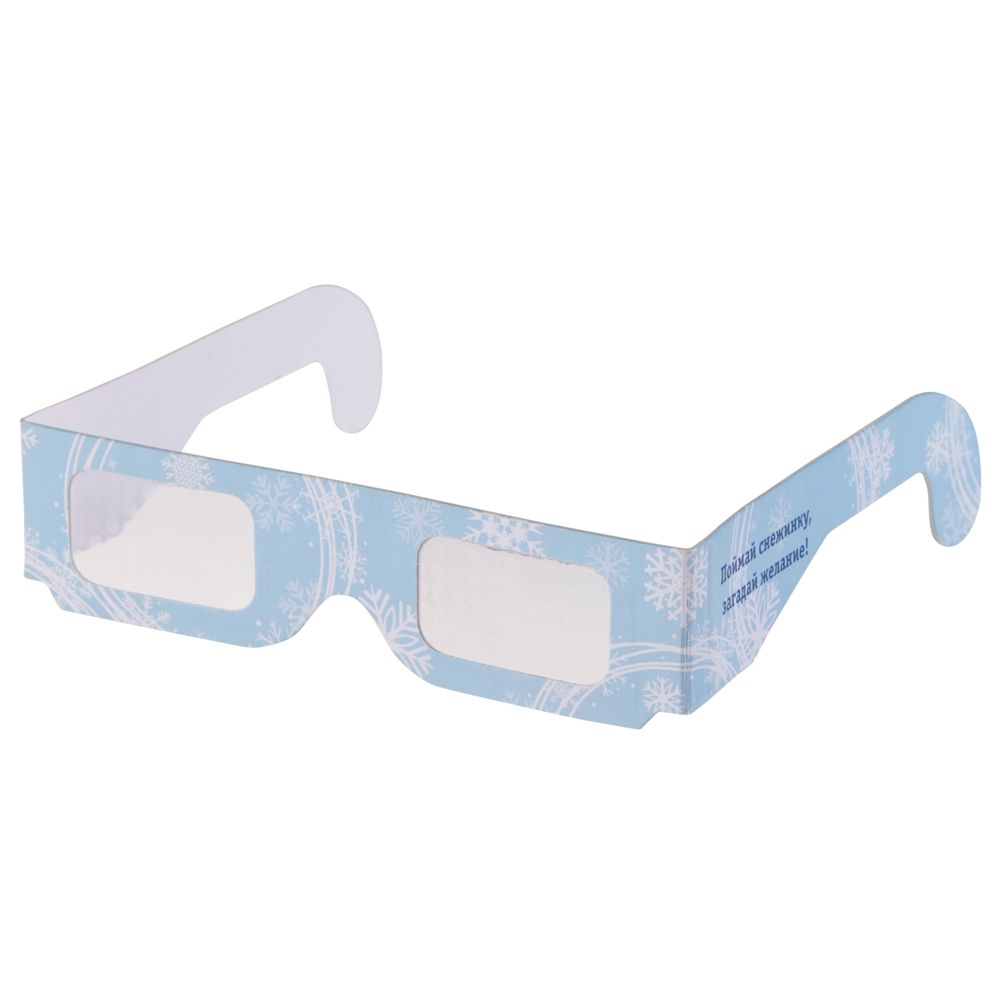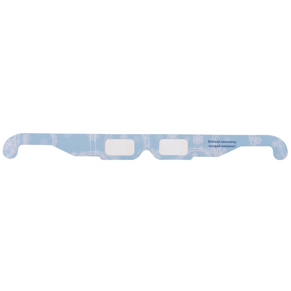 Новогодние 3d очки «снежинки», голубые. Размеры в развернутом виде: 40х3,7 см; в сложенном виде: 14,5х3,7 см Материал картон, пленка PET Вес (1 шт.) 5,75 г Транспортная упаковка 42,0x18,0x42,0 см Вес 11,50 кг Объем упаковки 0,032 м? Количество в упаковке 2000 шт. Виды нанесения SH-Шелкография (1 цвет) Взглянув через эти очки на источник света (светодиодные или LED-лампы), вы сможете увидеть 3D-изображение снежинки. Рекомендуем использовать очки в помещении с приглушенным освещением. Очки упакованы в полиэтиленовый пакет с инструкцией.