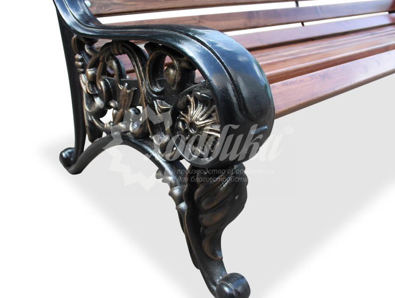 Скамейка садовая «парковая тишь» 1,8 м. Подробные характеристики Скамейка поставляется в разобранном виде! Лиственница лучше чем сосна! В производстве чугунных скамеек мы используем лиственницу. Материалы: Опоры: Чугунное художественное литьё. Покрыты порошковой полимерной краской. Возможность выбора цвета по каталогу RAL. Стандартный цвет (по умолчанию) - черный. Сиденье и спинка: Брус - ангарская сосна/лиственница (вариант исполнения: композитные материалы/термодерево). Огнебиозащитные пропитки + тонировочный состав с антисептиком + два слоя яхтного лака с промежуточным шлифованием. Возможность выбора цвета из палитры. Также предусмотрена возможность покрытия бруса маслом для наружных работ. Фурнитура: Оцинкованная. Стандартный цвет (по умолчанию) - серебристый. Возможность использования потайной/скрытой фурнитуры. Технические характеристики: Длина: 600 - 3000 мм Ширина: 700 мм Высота: 760 мм Вес: от 96.8 кг Высота сиденья: 380 мм Ширина сиденья: 430 мм О модели Чугунная скамейка «Парковая тишь» - одна из самых популярных моделей нашего ассортимента. Вы наверняка не раз видели, а может быть и отдыхали на такой скамейке. Её можно встретить практически во всех городах России. За счет ее монументальности она обрела популярность среди многих городских парков. Скамейка «Парковая тишь» за счет своей массы не предполагает частого перемещения. Вы можете быть уверены в сохранности такой скамейки даже в парке, где нет сторожа. Для большей безопасности мы можем оказать услугу по бетонированию чугунного основания или креплению анкерными болтами. Это значительно усложнит возможность утащить скамейку из вашего парка или садового участка. Наши скамейки в Крыму: благоустроили Севастополь, Ялту, Саки, Судак Варианты цвета на выбор: , махагон, палисандр, тик,