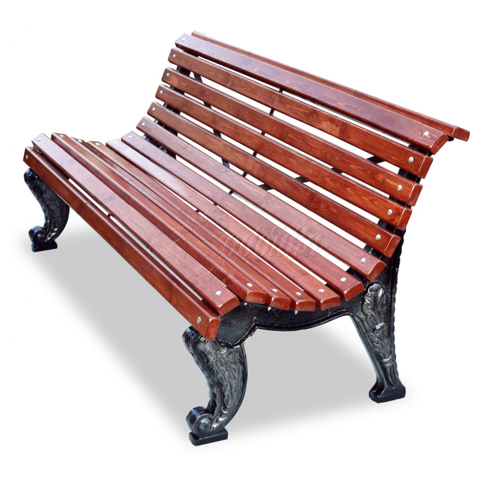 Скамейка «адмирал» 1,5 м. Подробные характеристики Скамейка поставляется в разобранном виде! Лиственница лучше чем сосна! В производстве чугунных скамеек мы используем лиственницу. Материалы: Опоры: Чугунное художественное литьё. Покрыты порошковой полимерной краской. Возможность выбора цвета по каталогу RAL. Стандартный цвет (по умолчанию) - черный. Сиденье и спинка: Брус - ангарская сосна/лиственница (вариант исполнения: композитные материалы/термодерево). Огнебиозащитные пропитки + тонировочный состав с антисептиком + два слоя яхтного лака с промежуточным шлифованием. Возможность выбора цвета из палитры. Также предусмотрена возможность покрытия бруса маслом для наружных работ. Фурнитура: Оцинкованная. Стандартный цвет (по умолчанию) - серебристый. Возможность использования потайной/скрытой фурнитуры. Технические характеристики: Длина: 600 - 3000 мм Ширина: 780 мм Высота: 815 мм Вес: от 105,2 кг до 184,8 кг Высота сиденья: 440 мм Ширина сиденья: 450 мм О модели Скамейка «Адмирал» - тяжелая и массивная скамейка, пригодная для установки в парках и других общественных местах с большим трафиком. Она устойчива к опрокидыванию и к горизонтальным нагрузкам, обладает хорошими антивандальными качествами. Для усиления этих качеств мы рекомендуем закреплять скамейки специальными анкерами или методом бетонирования. Чугунные опоры, брус из лиственницы - одни из самых долговечных материалов, используемых в производстве оборудования для общественных мест. Варианты цвета на выбор: , махагон, палисандр, тик,