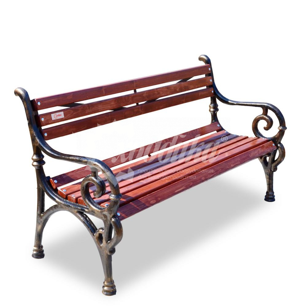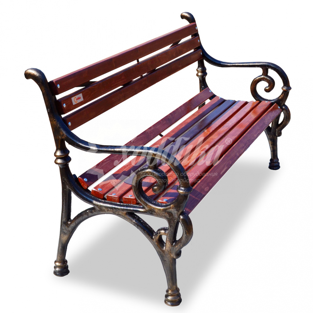Скамейка парковая «нега» 1,5 м. Подробные характеристики Скамейка поставляется в разобранном виде! Лиственница лучше чем сосна! В производстве чугунных скамеек мы используем лиственницу. Внимание, остерегайтесь подделок! Материалы: Опоры: Чугунное художественное литьё. Покрыты порошковой полимерной краской. Возможность выбора цвета по каталогу RAL. Стандартный цвет (по умолчанию) - черный + бронзовое патинирование. Сиденье и спинка: Брус - ангарская сосна/лиственница (вариант исполнения: композитные материалы) различного сечения. Огнебиозащитные пропитки + тонировочный состав с антисептиком + два слоя яхтного лака с промежуточным шлифованием. Возможность выбора цвета из палитры. Фурнитура: Оцинкованная. Возможность выбора цвета фурнитуры по каталогу RAL. Стандартный цвет (по умолчанию) - серебристый. Возможность использования потайной/скрытой фурнитуры. Технические характеристики: Высота: 900 мм Ширина: 690 мм Длина: 600 - 3000 мм Высота сиденья: 420 мм Ширина сиденья: 500 мм Высота спинки: 460 мм Вес: от 90 кг Варианты цвета на выбор: , груша, еловая зелень, махагон, палисандр, рябина, тик,