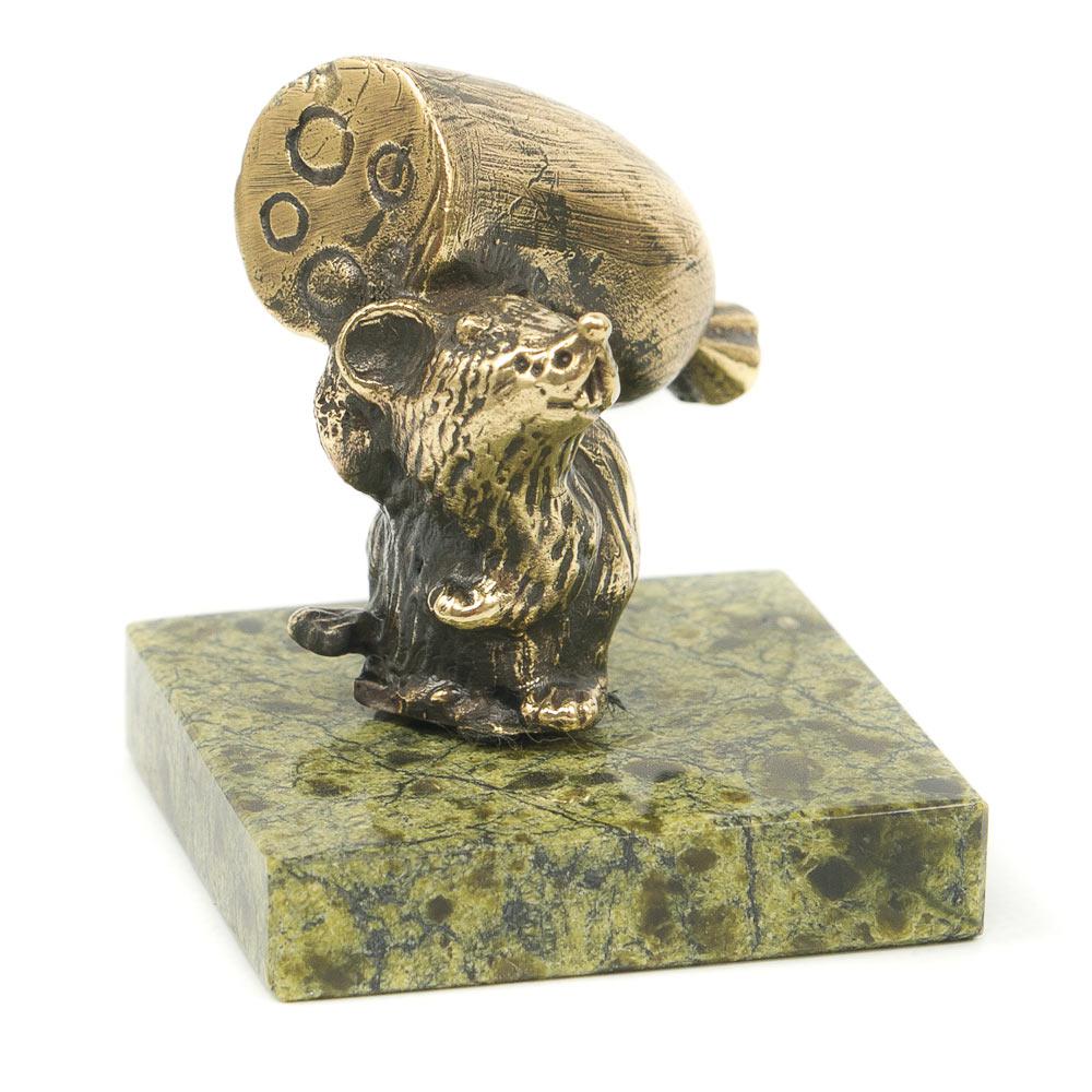 Статуэтка "крыса с батоном сыра" змеевик бронза