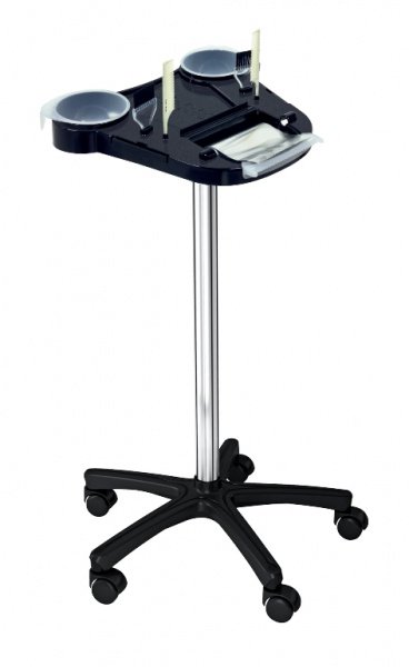 Тележка service - standard wheels. Тележка для окрашивания на колесиках. Тележка выполнена из прочного пластика. Тележка оснащена специальными углублениями под чаши и аксессуары для окрашивания, основанием на стойке с черным пластиковым пятилучьем. Возможные комплектации: 7223 N - Цвет: черный 7230 Color - Цвет: прозрачный, зеленый или фиолетовый Размер (ДхШхВ): 54х54х84 см Цена на сайте указана за комплектацию: 7223 N - Цвет: черный Стоимость модели, представленной на фото, может отличаться от цены, указанной на сайте. Артикул: 7223 N Бренд: Ceriotti