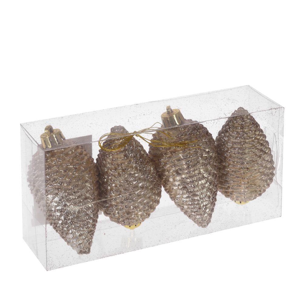 Украшение новогоднее шишка, набор из 4 шт, L4 W4 H8 см