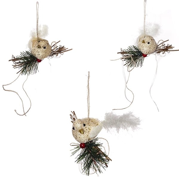Новогоднее украшение птичка, 12х5х25см, 3в