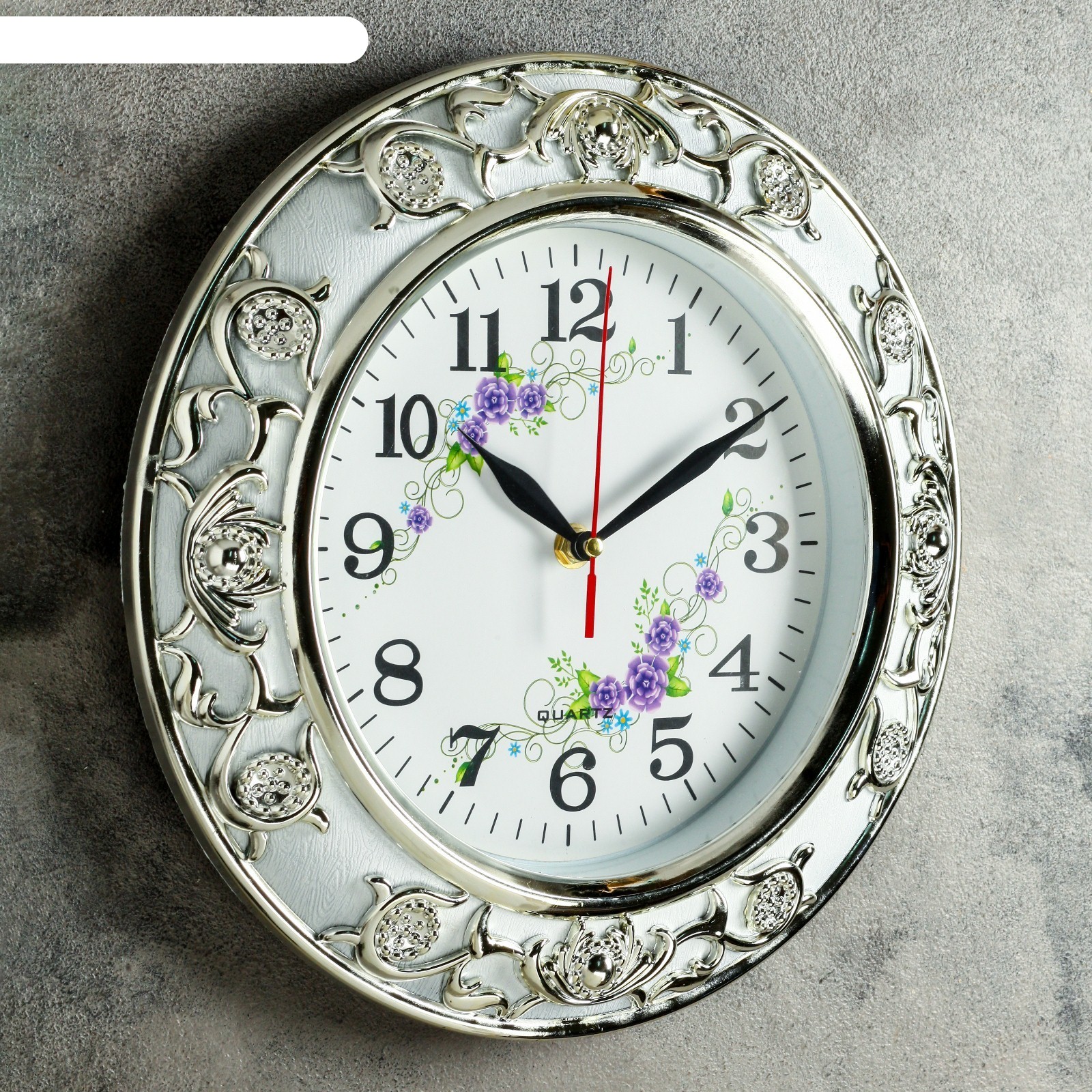Часы настенные круглые объемный узор серебро на белой раме белой, на цифер. Размер: 3 см х 30 см х 30 см Вес, гр: 562 Материал: Пластик, стекло Цвет: Белый Форма: Круглая Размер, см: 30 х 30 Тематика: Цветочно-растительная Тип индикации: Арабские цифры Тематика праздника: 8 Марта Материал: Пластик Материал: Стекло РосЗакуп: Да  развернуть описание ▼