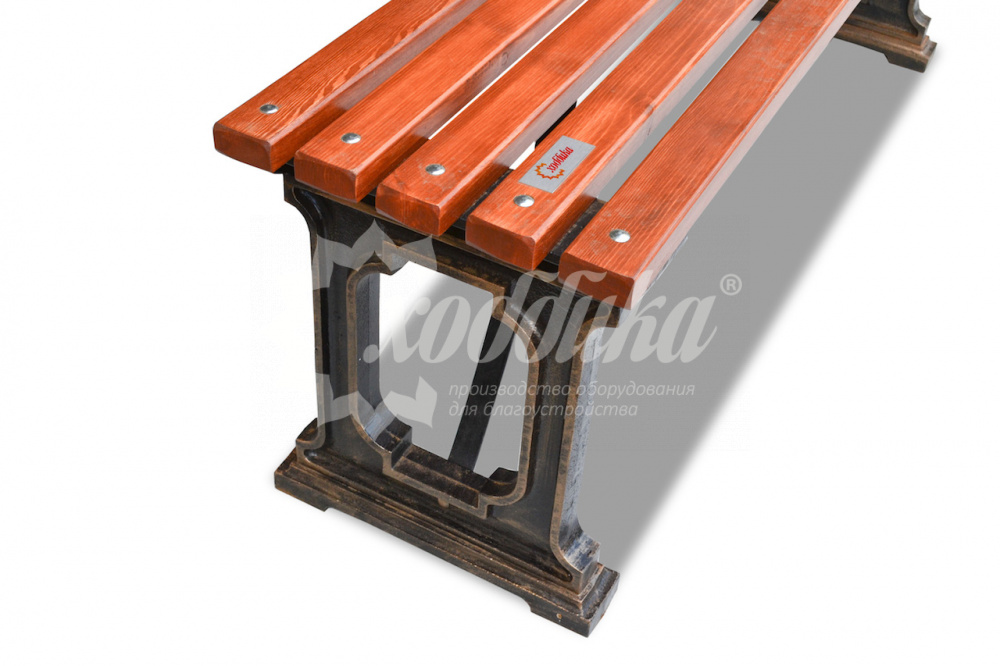 Банкетка чугунная «ладья» 2.0 м (две опоры). Подробные характеристики Скамейка поставляется в разобранном виде! Лиственница лучше чем сосна! В производстве чугунных скамеек мы используем лиственницу. Внимание, остерегайтесь подделок! Материалы: Опоры: Чугунное художественное литьё. Покрыты порошковой полимерной краской. Возможность выбора цвета по каталогу RAL. Стандартный цвет (по умолчанию) - черный + бронзовое патинирование. Сиденье и спинка: Брус - ангарская сосна/лиственница (вариант исполнения: композитные материалы) различного сечения. Огнебиозащитные пропитки + тонировочный состав с антисептиком + два слоя яхтного лака с промежуточным шлифованием. Возможность выбора цвета из палитры. Фурнитура: Оцинкованная. Возможность выбора цвета фурнитуры по каталогу RAL. Стандартный цвет (по умолчанию) - серебристый. Возможность использования потайной/скрытой фурнитуры. Технические характеристики: Высота: 480 мм Ширина: 480 мм Длина: 1500 - 3000 мм Высота сиденья: 480мм Ширина сиденья: 380 мм Длина посадочного места: 1500 - 3000 мм Вес: от 50 кг Варианты цвета на выбор: , махагон, палисандр, тик,