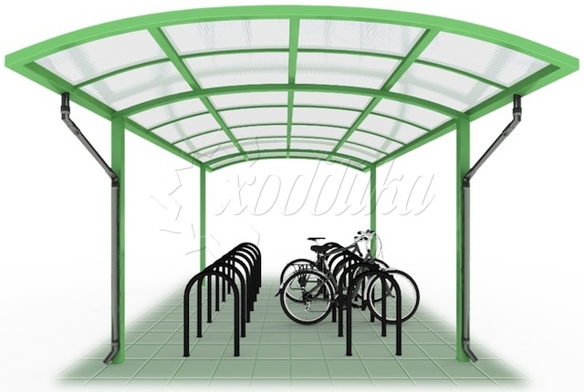 Массовая велопарковка velo-12 28 мест. Подробные характеристики Материалы: Крыша: Поликарбонат. Парковка: Профильная сталь. Покрыта порошковой полимерной краской. Возможность выбора цвета по каталогу RAL. Стандартный цвет (по умолчанию) - черный. Технические характеристики: Кол-во мест: до 28 Длина: 4000 мм Ширина: 3880 мм Высота: 3240 мм Вес: от 250 кг О модели Массовая вело-парковка с количеством мест до 28 штук под навесом, может использоваться в качестве пункта по прокату велосипедов, вело-парковки у торговых или офисных центров и других учреждений. Поставляется в разобранном виде, годится для доставки грузовым транспортом и установке на объекте. Опоры навеса устанавливаются в грунт путем бетонирования, либо болтовым креплением. Порошковая окраска по каталогу RAL. Возможно изготовление массовых велосипедных парковок любых конфигураций и количества парковочных мест.