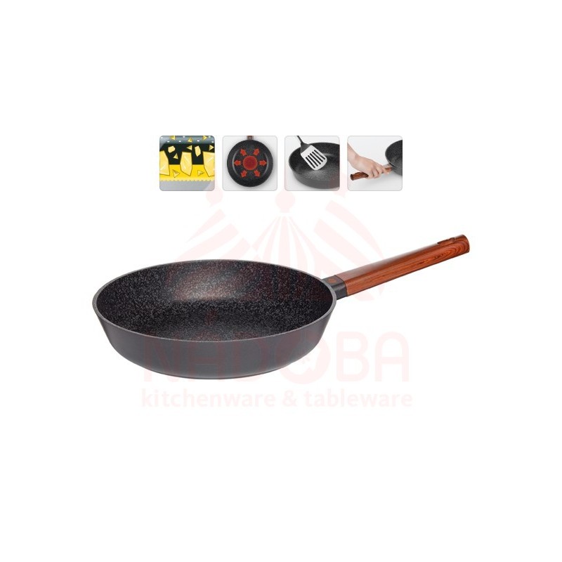 Сковорода с антипригарным покрытием oldra 28 см 728816. Диаметр 28 см Диаметр дна 22 см Для индукционной плиты да Съемная ручка Нет Вес 1265 грамм Объем 2,97 л Для духовки Да Антипригарное покрытие Ilag Granistone (4-слойное антипригарное, усиленно минералами, без PFOA) Материал Литой алюминий Длина с ручкой 48,5 см Толщина дна 6,2 мм (5 мм) Высота борта 6 см Цвет черный Сковорода с антипригарным покрытием OLDRA 728816 Диаметр сковороды - 28 см Сковорода изготовлена из литого алюминия с использованием особо прочного 4-слойного антипригарного покрытия ILAG Granistone, усиленного минералами. Антипригарное покрытие ILAG Granistone не содержит PFOA, кадмий, свинец, а также любых других вредных веществ и полностью безопасно. Высокая прочность антипригарного покрытия позволяет использовать при приготовлении пищи неострые металлические инструменты. Массивный корпус из литого алюминия обеспечивает равномерной нагрев всей поверхности посуды и не деформируется при нагревании или после частого использования. Ненагревающаяся ручка выполнена из бакелита с покрытием, предотвращающим выскальзывание из рук. Посуда подходит для всех типов плит, включая индукционные. Сковорода с антипригарным покрытием OLDRA 728816 Диаметр сковороды- 28 см Сковорода из литого алюминия с прочным 4-слойным антипригарным покрытием ILAG Granistone, которое усиленно минералами Массивный корпус из литого алюминия обеспечивает равномерной нагрев посуды и не деформируется при нагревании. Ненагревающаяся ручка выполнена из бакелита с покрытием, предотвращающим выскальзывание из рук