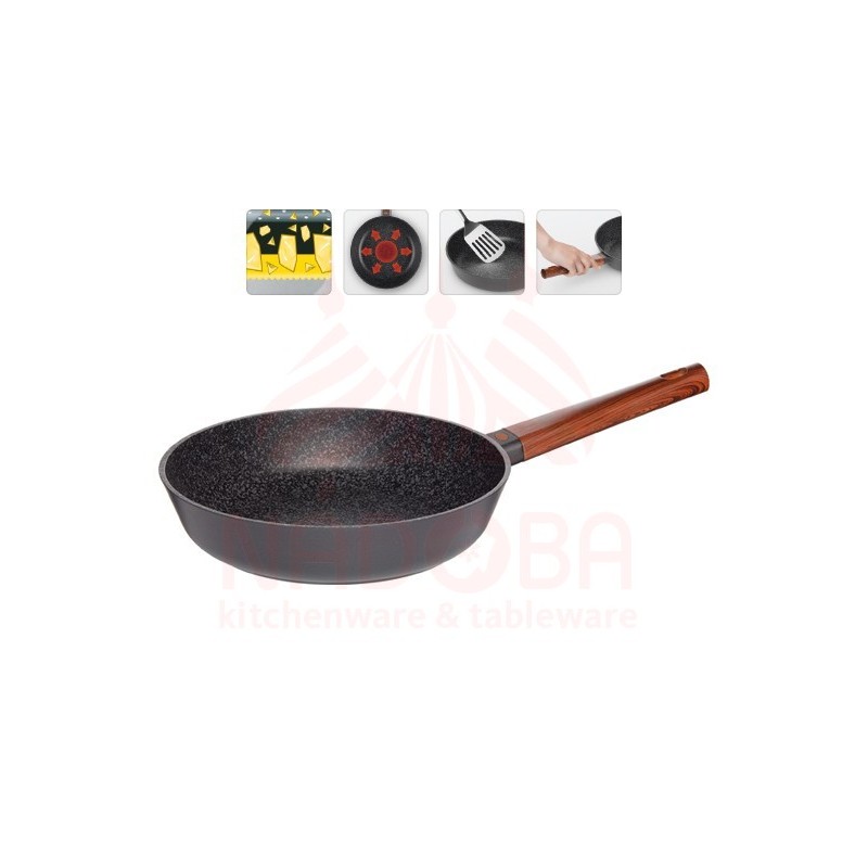 Сковорода с антипригарным покрытием oldra 26 см 728817. Диаметр 26 см Диаметр дна 20 см Для индукционной плиты да Съемная ручка Нет Объем 2,5 л Для духовки Да Антипригарное покрытие Ilag Granistone (4-слойное антипригарное, усиленно минералами, без PFOA) Материал Литой алюминий Длина с ручкой 47 см Толщина дна 6,2 мм (5 мм) Высота борта 6 см Цвет черный Сковорода с антипригарным покрытием OLDRA 728817 Диаметр сковороды - 26 см Сковорода изготовлена из литого алюминия с использованием особо прочного 4-слойного антипригарного покрытия ILAG Granistone, усиленного минералами. Антипригарное покрытие ILAG Granistone не содержит PFOA, кадмий, свинец, а также любых других вредных веществ и полностью безопасно. Высокая прочность антипригарного покрытия позволяет использовать при приготовлении пищи неострые металлические инструменты. Массивный корпус из литого алюминия обеспечивает равномерной нагрев всей поверхности посуды и не деформируется при нагревании или после частого использования. Ненагревающаяся ручка выполнена из бакелита с покрытием, предотвращающим выскальзывание из рук. Посуда подходит для всех типов плит, включая индукционные. Сковорода с антипригарным покрытием OLDRA 728817 Диаметр сковороды - 26 см Сковорода из литого алюминия с прочным 4-слойным антипригарным покрытием ILAG Granistone, которое усиленно минералами Массивный корпус из литого алюминия обеспечивает равномерной нагрев посуды и не деформируется при нагревании Ненагревающаяся ручка выполнена из бакелита с покрытием, предотвращающим выскальзывание из рук