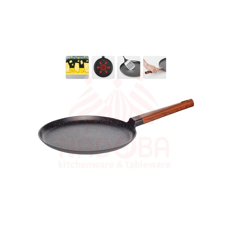 Сковорода блинная с антипригарным покрытием oldra 28 см 728821. Диаметр 28 см Диаметр дна 23,5 см Для индукционной плиты да Съемная ручка Нет Для духовки Да Антипригарное покрытие Ilag Granistone (4-слойное антипригарное, усиленно минералами, без PFOA) Материал Литой алюминий Длина с ручкой 48,5 см Толщина дна 6,2 мм (5 мм) Высота борта 2 см Цвет черный Сковорода с антипригарным покрытием OLDRA Диаметр- 28см Сковорода изготовлена из литого алюминия с использованием особо прочного 4-слойного антипригарного покрытия ILAG Granistone, усиленного минералами. Антипригарное покрытие ILAG Granistone не содержит PFOA, кадмий, свинец, а также любых других вредных веществ и полностью безопасно. Высокая прочность антипригарного покрытия позволяет использовать при приготовлении пищи неострые металлические инструменты. Массивный корпус из литого алюминия обеспечивает равномерной нагрев всей поверхности посуды и не деформируется при нагревании или после частого использования. Ненагревающаяся ручка выполнена из бакелита с покрытием, предотвращающим выскальзывание из рук. Посуда подходит для всех типов плит, включая индукционные. Сковорода с антипригарным покрытием OLDRA Диаметр- 28см Сковорода из литого алюминия с прочным 4-слойным антипригарным покрытием ILAG Granistone, которое усиленно минералами Массивный корпус из литого алюминия обеспечивает равномерной нагрев посуды и не деформируется при нагревании. Ненагревающаяся ручка выполнена из бакелита с покрытием, предотвращающим выскальзывание из рук