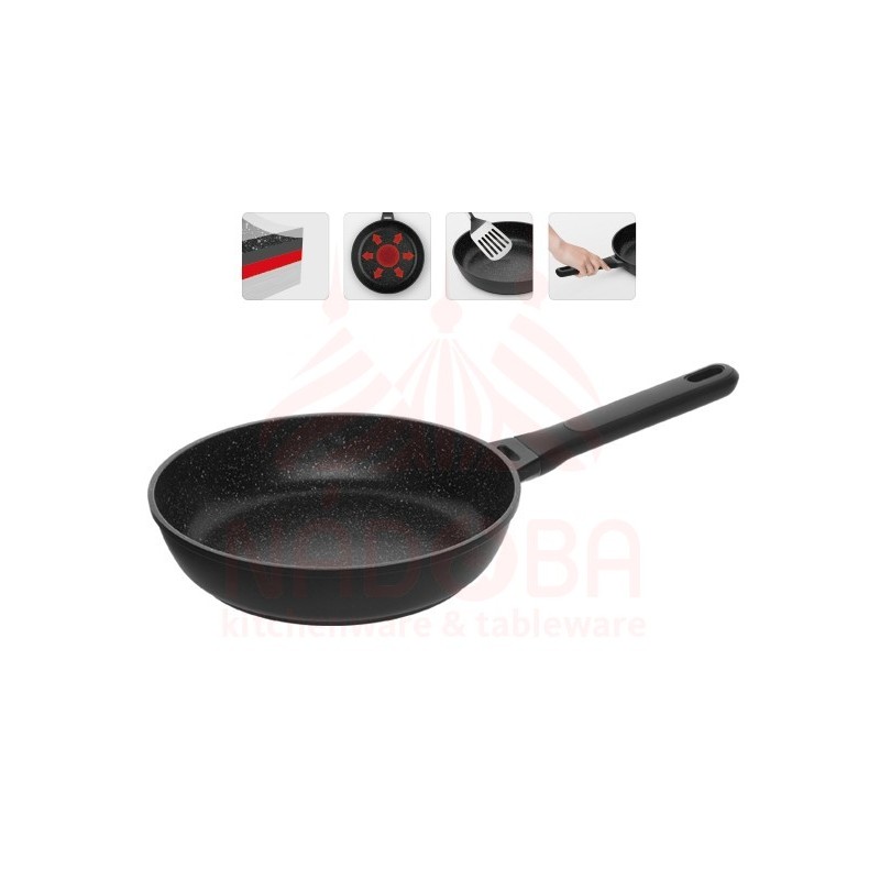 Сковорода с антипригарным покрытием dara 26 см 729117. Диаметр 26 см Диаметр дна 19,5 см Для индукционной плиты да Съемная ручка Нет Вес 1,1 кг Объем 2,3 л Для духовки Да Антипригарное покрытие Pfluon (5-слойное гранитное, усилено минералами, без PFOA) Материал Литой алюминий Длина с ручкой 46,5 см Толщина стенок 3-6 мм Толщина дна 5,5 мм Высота борта 6 см Цвет черно-серая Сковорода с антипригарным покрытием Dara 729117 Диаметр сковороды - 26 см Сковорода изготовлена из особо прочного 5-слойного антипригарного покрытия Pfluon на основе структуры гранита с прекрасными антипригарными свойствами, прочностью и износостойкостью, благодаря чему посуда подходит для ежедневного использования и будет служить не один год. Покрытие не содержит PFOA, кадмий, свинец и полностью безопасно Высокая прочность антипригарного покрытия позволяет использовать при приготовлении пищи неострые металлические инструменты Массивный корпус из литого алюминия обеспечивает равномерный нагрев всей поверхности посуды и не деформируется при нагревании или после частого использования Дно посуды идеально прилегает к поверхности плиты, что обеспечивает её устойчивость и эффективный нагрев Удобные ненагревающиеся ручки «Софт-тач» выполнена из материала, предотвращающего их выскальзывание из рук Подходит для всех типов плит, включая индукционные Допускается использование в посудомоечной машине Гарантия 5 лет Сковорода с антипригарным покрытием Dara 729117 Диаметр сковороды - 26 см Сковорода изготовлена из особо прочного 5-слойного антипригарного покрытия Pfluon на основе структуры гранита Допустимо использование неострых металлических кухонных инструментов Подходит для всех типов плит, включая индукционные