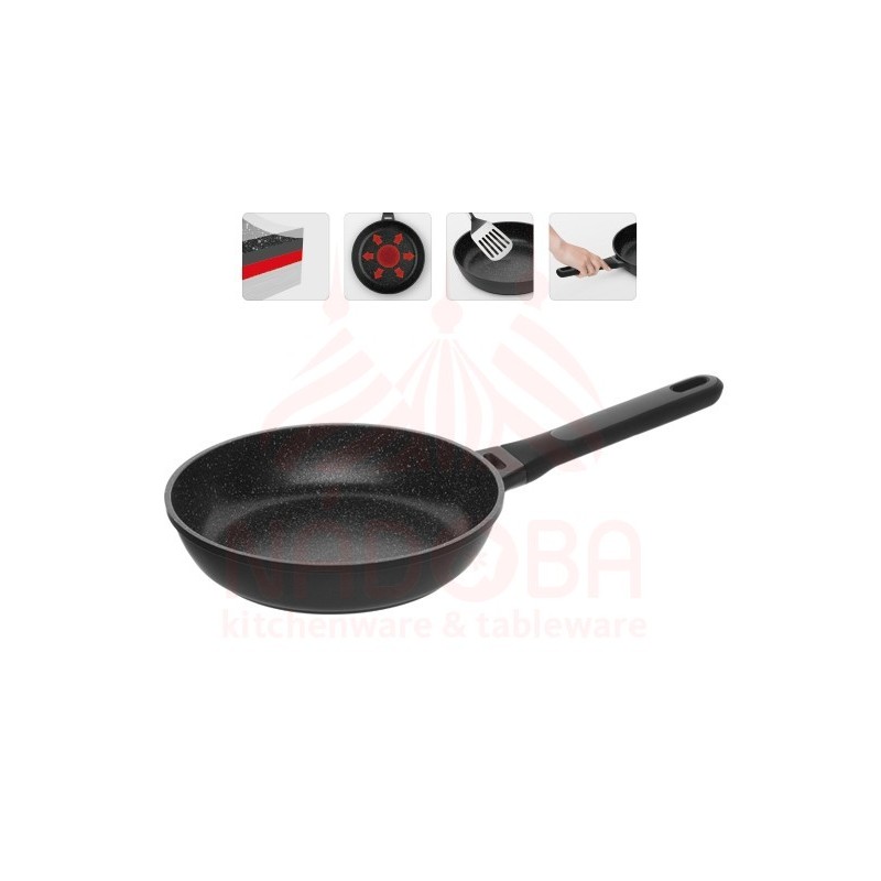 Сковорода с антипригарным покрытием dara 24 см 729118. Диаметр 24 см Диаметр дна 17.5 см Для индукционной плиты да Съемная ручка Нет Вес 0,9 кг Объем 1,7 л Для духовки Да Антипригарное покрытие Pfluon (5-слойное гранитное, усилено минералами, без PFOA) Материал Литой алюминий Длина с ручкой 44,5 см Толщина стенок 3-6 мм Толщина дна 5,5 мм Высота борта 5.5 см Цвет черно-серая Сковорода с антипригарным покрытием Dara 729118 Диаметр сковороды - 24 см Сковорода изготовлена из особо прочного 5-слойного антипригарного покрытия Pfluon на основе структуры гранита с прекрасными антипригарными свойствами, прочностью и износостойкостью, благодаря чему посуда подходит для ежедневного использования и будет служить не один год. Покрытие не содержит PFOA, кадмий, свинец и полностью безопасно Высокая прочность антипригарного покрытия позволяет использовать при приготовлении пищи неострые металлические инструменты Массивный корпус из литого алюминия обеспечивает равномерный нагрев всей поверхности посуды и не деформируется при нагревании или после частого использования Дно посуды идеально прилегает к поверхности плиты, что обеспечивает её устойчивость и эффективный нагрев Удобные ненагревающиеся ручки «Софт-тач» выполнена из материала, предотвращающего их выскальзывание из рук Подходит для всех типов плит, включая индукционные Допускается использование в посудомоечной машине Гарантия 5 лет Сковорода с антипригарным покрытием Dara 729118 Диаметр сковороды - 24 см Сковорода изготовлена из особо прочного 5-слойного антипригарного покрытия Pfluon на основе структуры гранита Допустимо использование неострых металлических кухонных инструментов Подходит для всех типов плит, включая индукционные