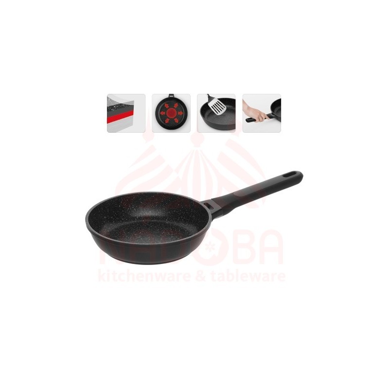 Сковорода с антипригарным покрытием dara 20 см 729119. Диаметр 20 см Диаметр дна 15 см Для индукционной плиты да Съемная ручка Нет Вес 0,7 кг Объем 1 л Для духовки Да Антипригарное покрытие Pfluon (5-слойное гранитное, усилено минералами, без PFOA) Материал Литой алюминий Длина с ручкой 40 см Толщина стенок 3-6 мм Толщина дна 5,5 мм Высота борта 5 см Цвет черно-серая Сковорода с антипригарным покрытием Dara 729119 Диаметр сковороды - 20 см Сковорода изготовлена из особо прочного 5-слойного антипригарного покрытия Pfluon на основе структуры гранита с прекрасными антипригарными свойствами, прочностью и износостойкостью, благодаря чему посуда подходит для ежедневного использования и будет служить не один год. Покрытие не содержит PFOA, кадмий, свинец и полностью безопасно Высокая прочность антипригарного покрытия позволяет использовать при приготовлении пищи неострые металлические инструменты Массивный корпус из литого алюминия обеспечивает равномерный нагрев всей поверхности посуды и не деформируется при нагревании или после частого использования Дно посуды идеально прилегает к поверхности плиты, что обеспечивает её устойчивость и эффективный нагрев Удобные ненагревающиеся ручки «Софт-тач» выполнена из материала, предотвращающего их выскальзывание из рук Подходит для всех типов плит, включая индукционные Допускается использование в посудомоечной машине Гарантия 5 лет Сковорода с антипригарным покрытием Dara 729119 Диаметр сковороды - 20 см Сковорода изготовлена из особо прочного 5-слойного антипригарного покрытия Pfluon на основе структуры гранита Допустимо использование неострых металлических кухонных инструментов Подходит для всех типов плит, включая индукционные