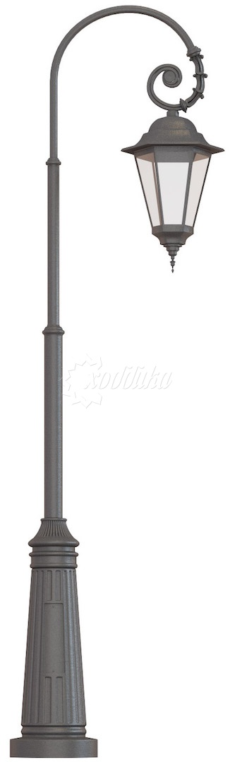 Фонарный столб л-01 со светильником 3,516 м.. Подробные характеристики Материалы: Основание и кронштейн: Чугунное художественное литьё. Покрыты порошковой полимерной краской. Возможность выбора цвета по каталогу RAL. Стандартный цвет (по умолчанию) - черный + бронзовое патинирование. Стойка: Сталь. Покрыта порошковой полимерной краской. Возможность выбора цвета по каталогу. Стандартный цвет (по умолчанию) - черный + бронзовое патинирование. Светильник: Бремен. Технические характеристики: Источник света: Патрон E-27 под лампу накаливания до 150 Вт, либо энергосберегающую лампу. Возможна комплектация ПРА под Nat70, Nat100, ДРЛ80, ДРЛ125 и источником света. Возможно комплектование светодиодными модулями. Высота: от 3,516 до 5,516 м Вес: от 116 кг Установка производится путем бетонирования стойки (закладного фундамента), либо бетонированием закладной детали с последующим креплением стойки болтовым соединением. Закладной фундамент заказывается отдельно и в цену не входит. О модели Используется для освещения парков, скверов, коттеджных поселков, частных домов, прилегающих территорий зданий. Установка производится путем бетонирования стойки (закладного фундамента), либо бетонированием закладной детали с последующим креплением стойки болтовым соединением.