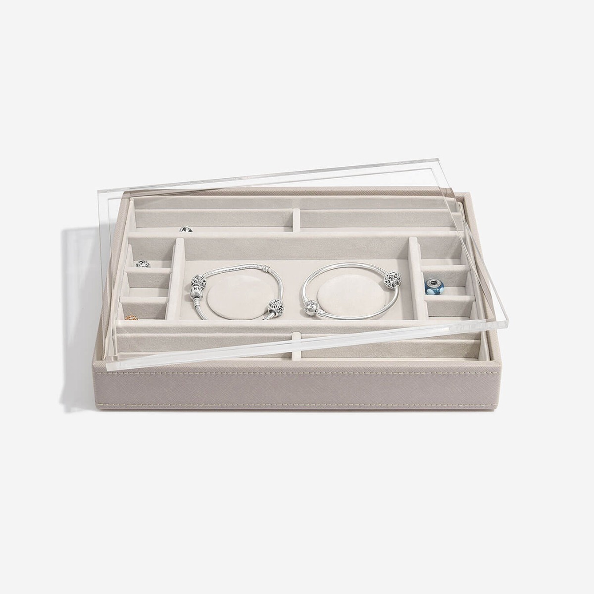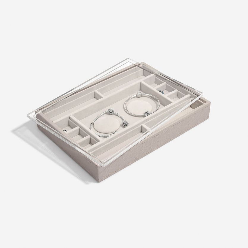 Лоток для драгоценностей с крышкой lc designs co. ltd. арт.74403. Кол-во часов: Бренд: LC Designs Co. Ltd (Англия) Габариты: Материал корпуса: Экокожа Цвет: Серый Лоток для драгоценностей с крышкой LC Designs Co. Ltd. арт.74403 классического дизайна для комфортного хранения украшений, ожерелий, браслетов, цепочек Состоит из одного яруса который в свою очередь имеет много отделений для различных украшений . Имеется акриловая крышка. Изготовлена из высококачественного материала - экокожи, серого цвета. При изготовлении шкатулки используется лишь дорогая и качественная фурнитура.