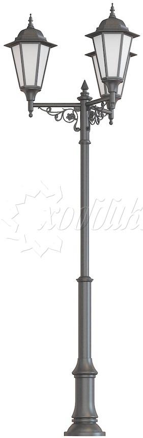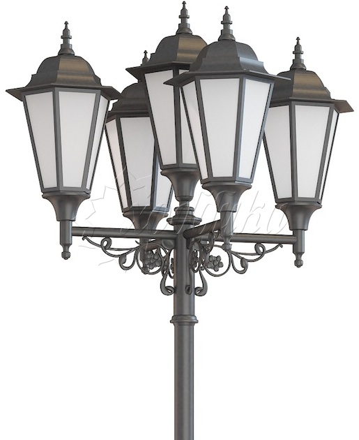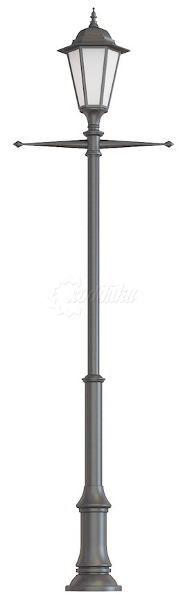 Фонарь уличный «пушкин - 1» со светильником 3,663 м.. Подробные характеристики Материалы: Основание и кронштейн: Чугунное художественное литьё. Покрыты порошковой полимерной краской. Возможность выбора цвета по каталогу RAL. Стандартный цвет (по умолчанию) - черный + бронзовое патинирование. Стойка: Сталь. Покрыта порошковой полимерной краской. Возможность выбора цвета по каталогу. Стандартный цвет (по умолчанию) - черный + бронзовое патинирование. Светильник: Бремен. Технические характеристики: Источник света: Патрон E-27 под лампу накаливания до 150 Вт, либо энергосберегающую лампу. Возможна комплектация ПРА под Nat70, Nat100, ДРЛ80, ДРЛ125 и источником света. Возможно комплектование светодиодными модулями. Высота: от 3,663 до 6.163 м Вес: от 100 кг Установка производится путем бетонирования стойки (закладного фундамента), либо бетонированием закладной детали с последующим креплением стойки болтовым соединением. Закладной фундамент заказывается отдельно и в цену не входит. О модели Используется для освещения парков, скверов, коттеджных поселков, частных домов, прилегающих территорий зданий. Установка производится путем бетонирования стойки (глубина 1,2 метра), либо бетонированием закладной детали с последующим креплением стойки болтовым соединением.