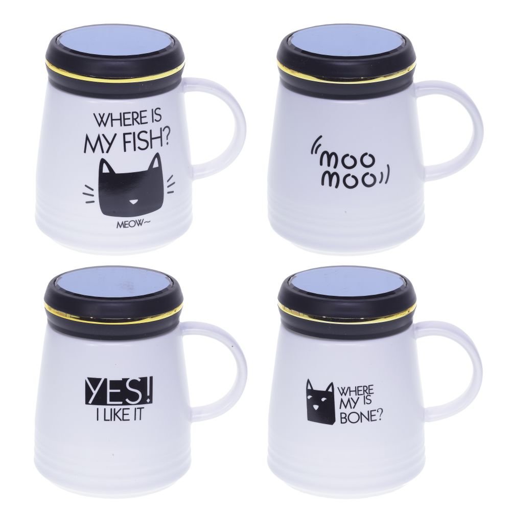 Кружка с крышкой, 400 мл, L9,8 W9,8 H12 см, 4в.