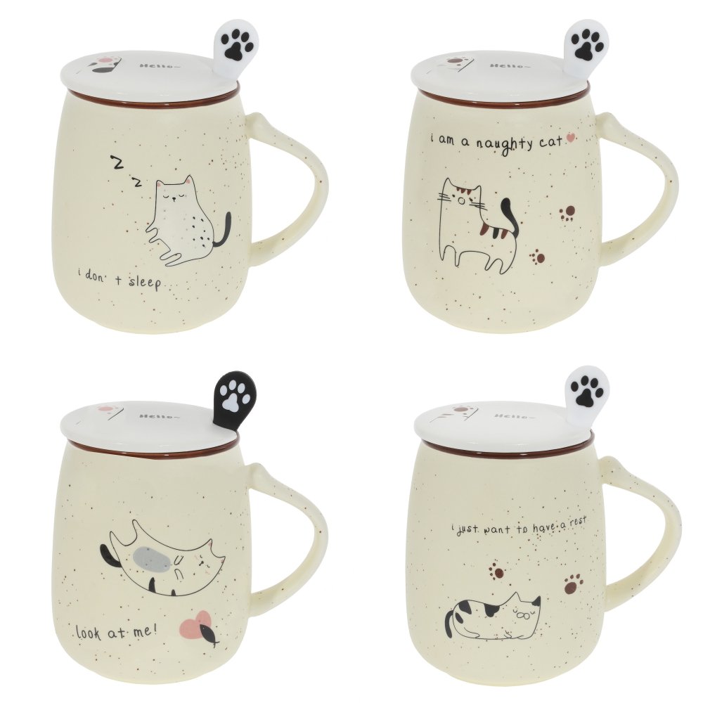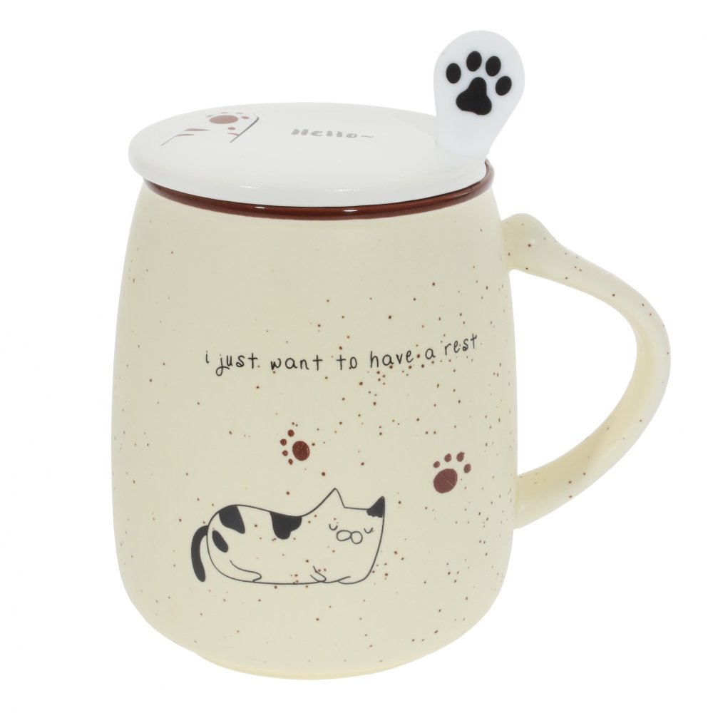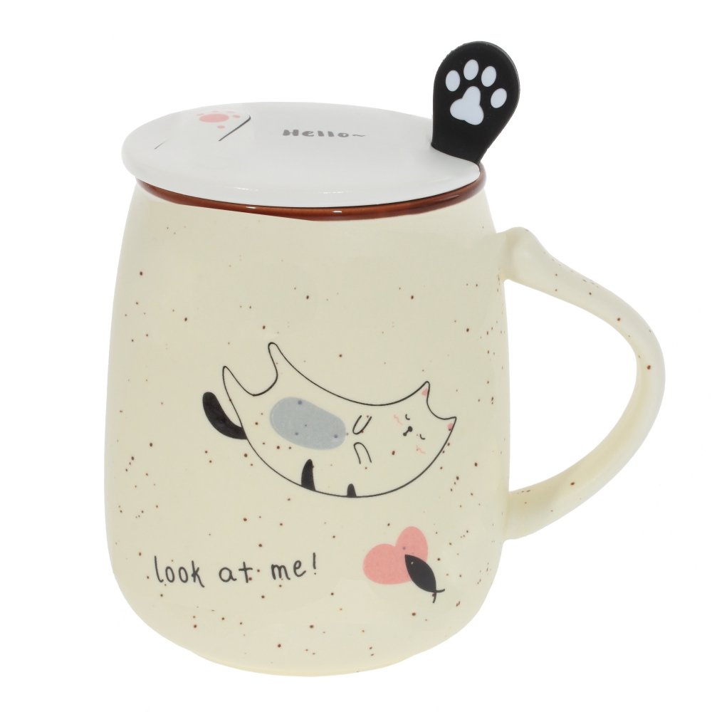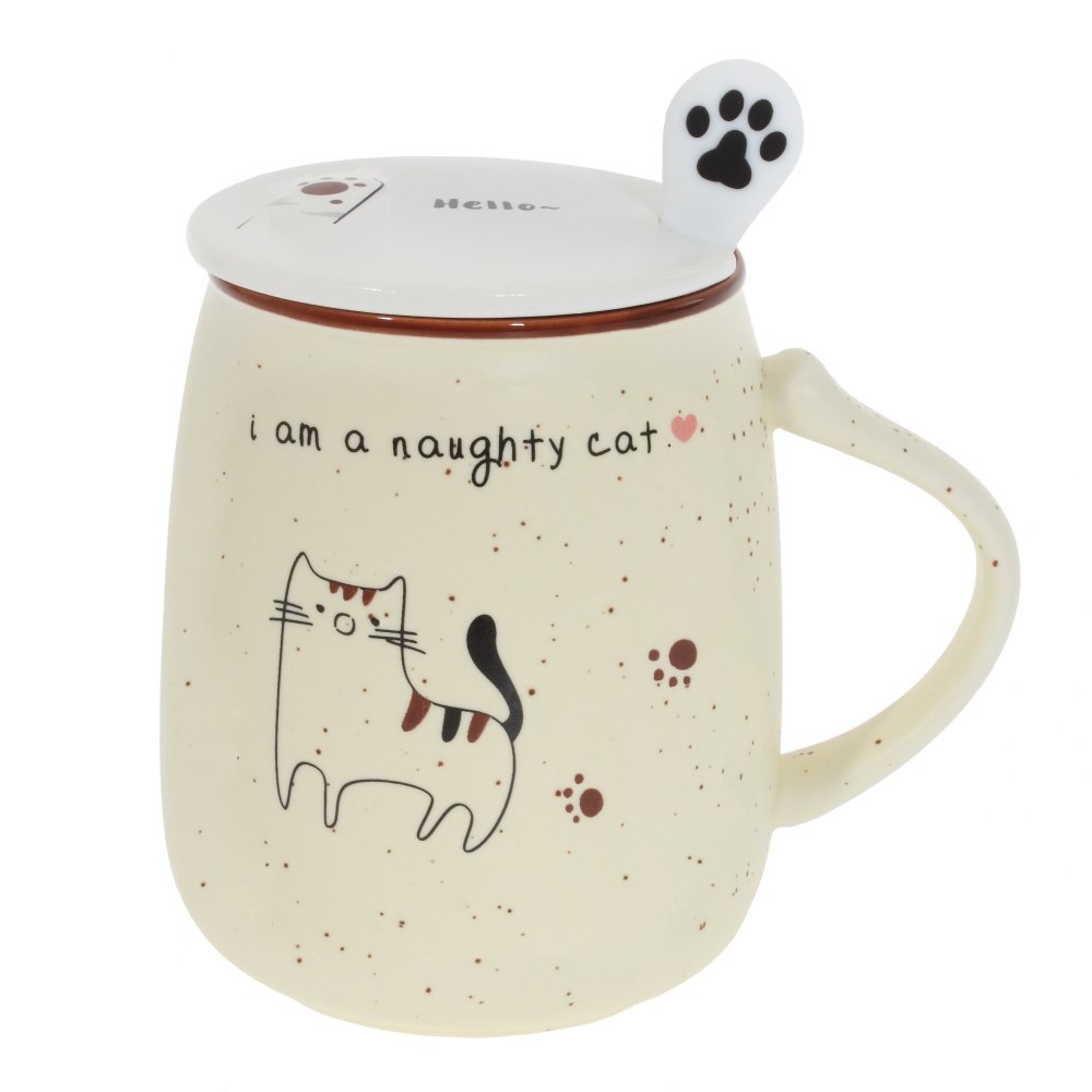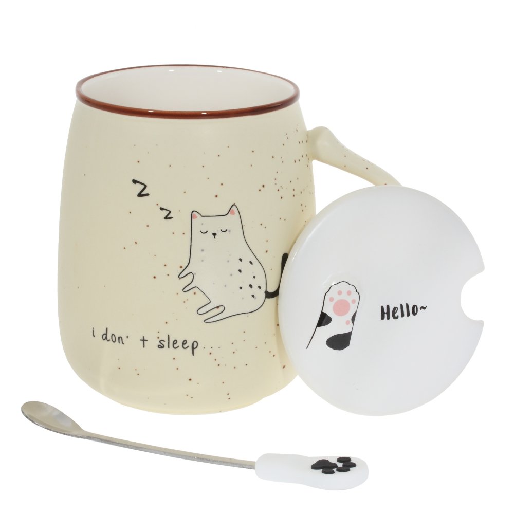 Кружка с крышкой и ложкой, 500 мл, l12 w9 h11 см, 4в..