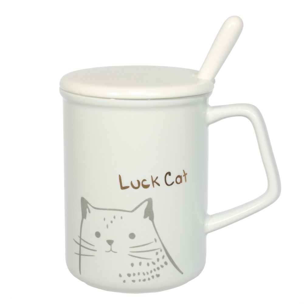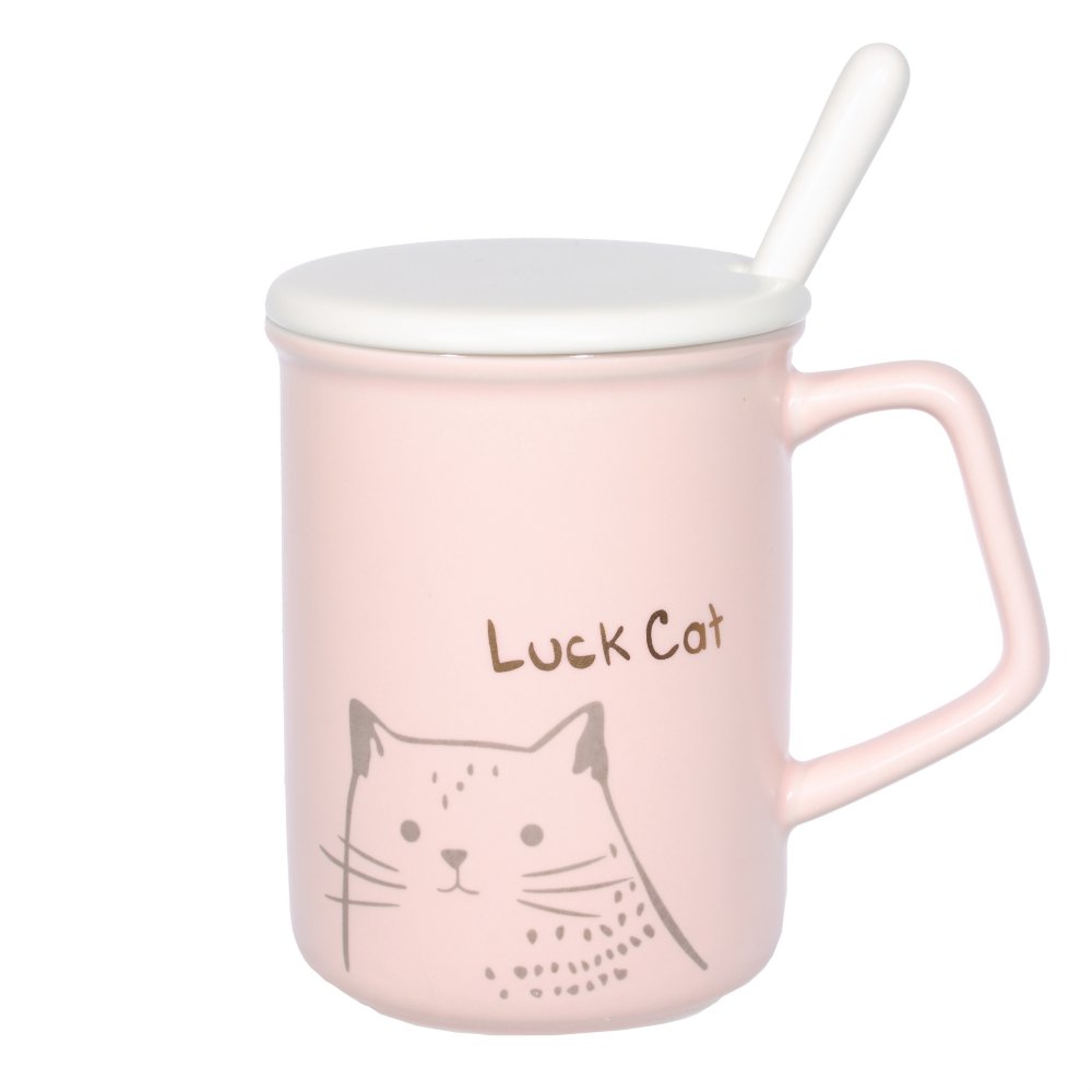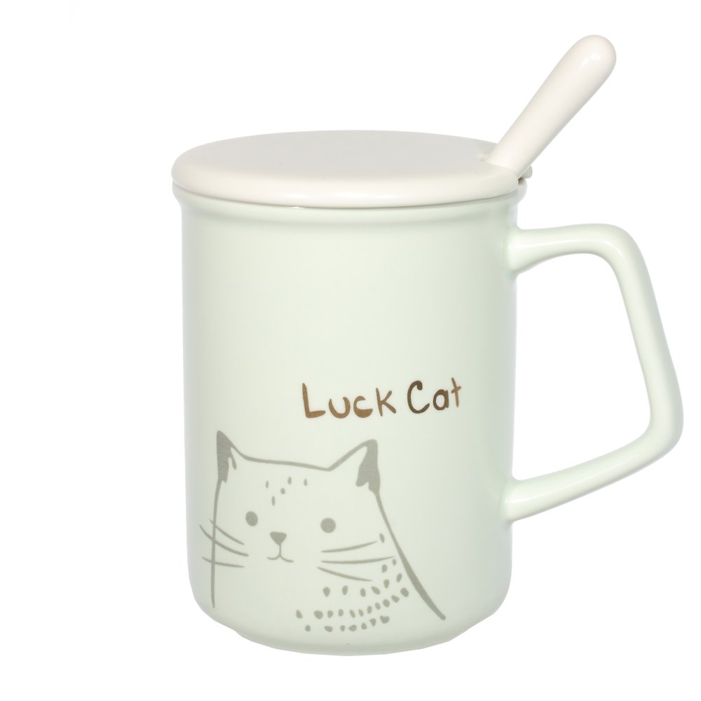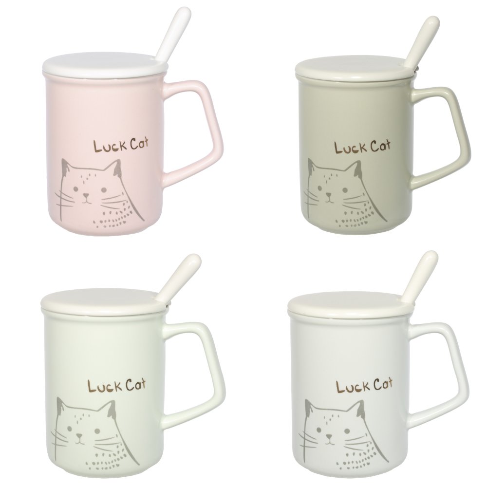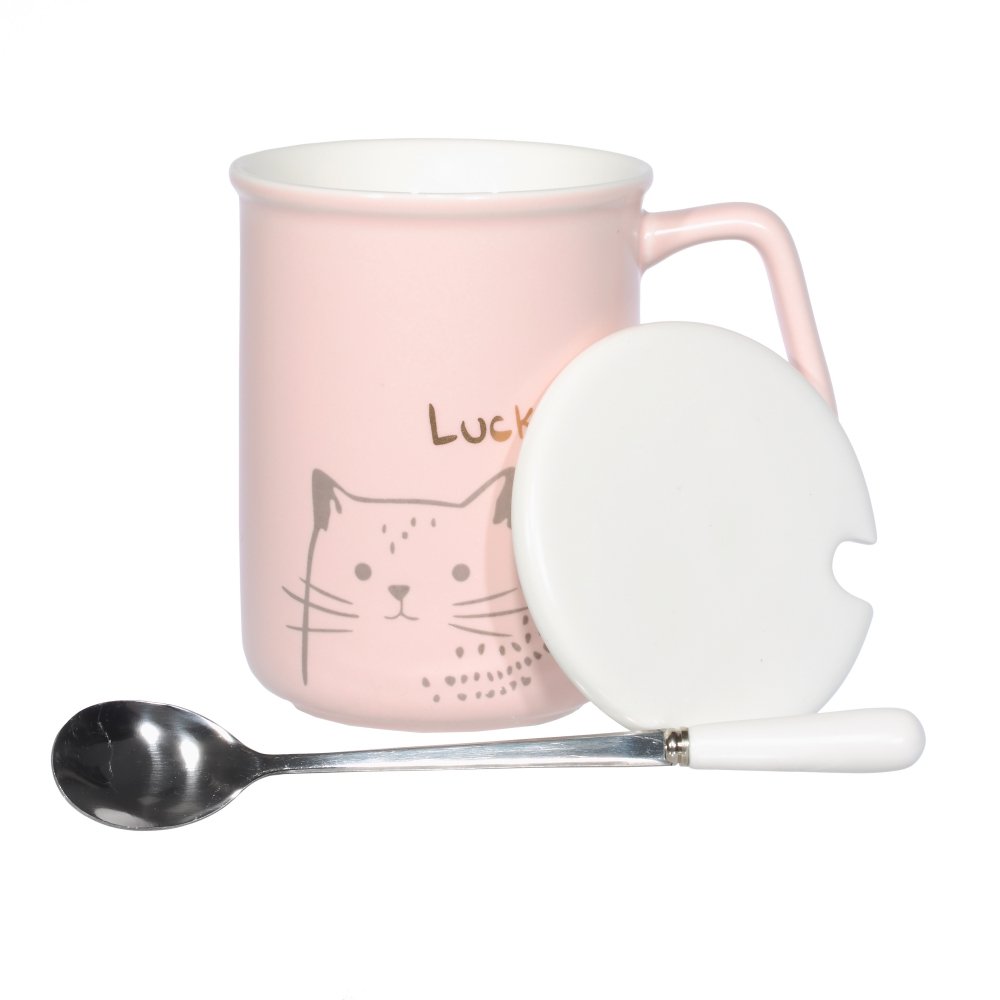 Кружка с крышкой и ложкой, 400 мл, L13 W8,5 H11,5 см, 4в.