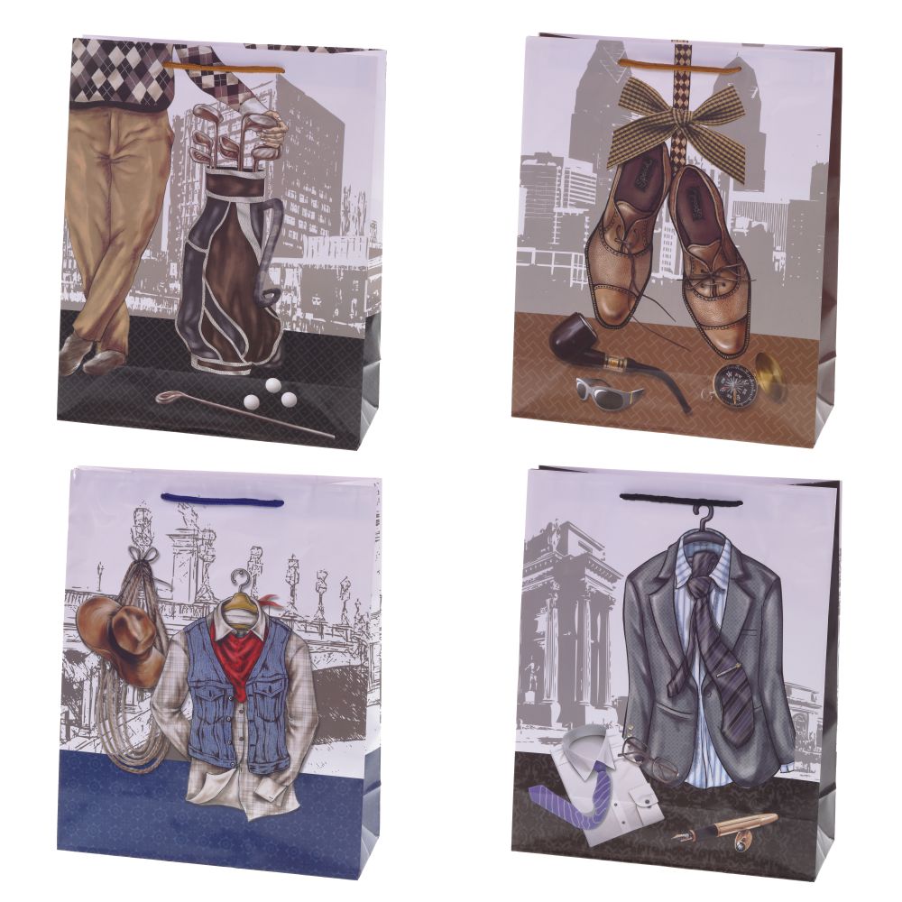 Пакет подарочный(бумага, плотность 128г/м2, блок из 12-и шт.), L18 W8 H21,