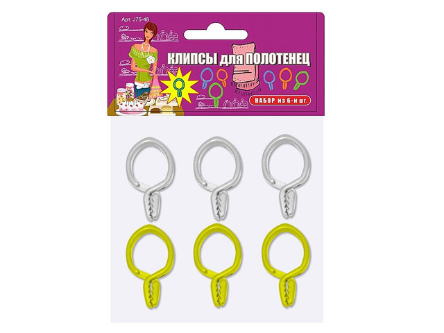 Клипсы для полотенец J75-48 4см 6шт. пластик цв.в асс.
