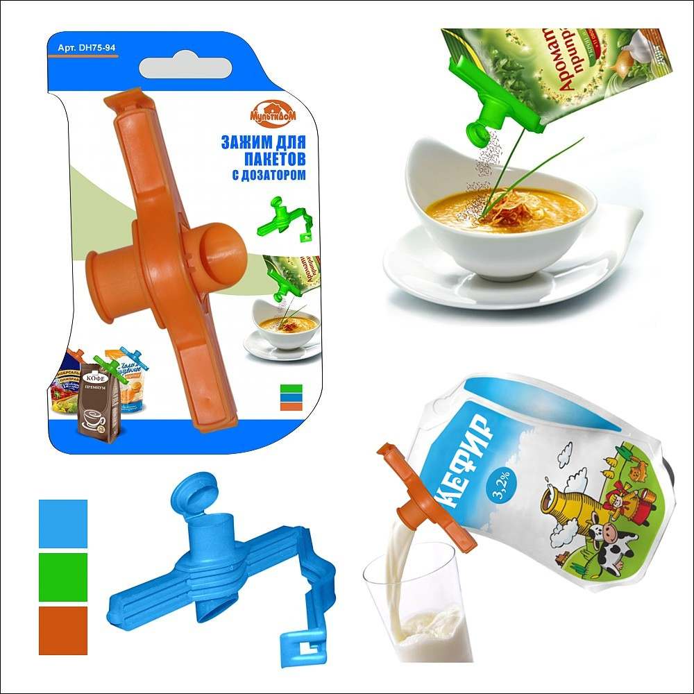 Зажимы для пакетов dh75-94 с дозатором 11х5см. пластик цв.в асс..