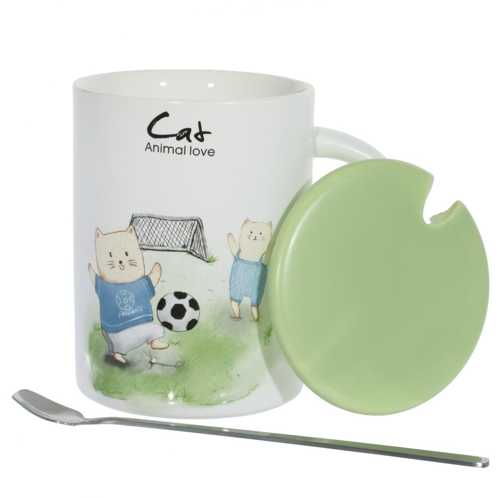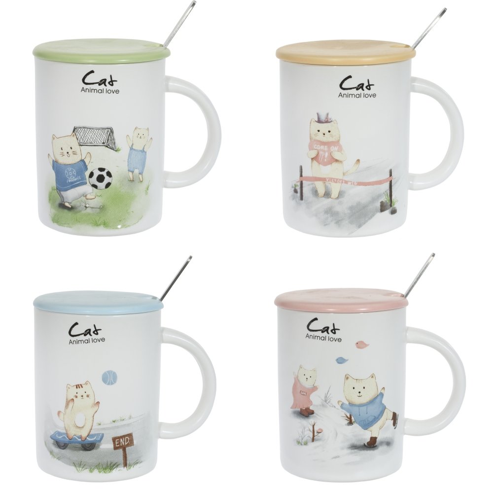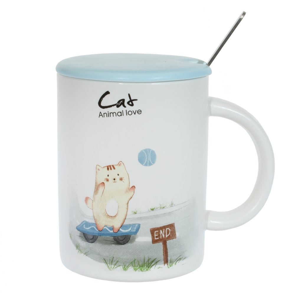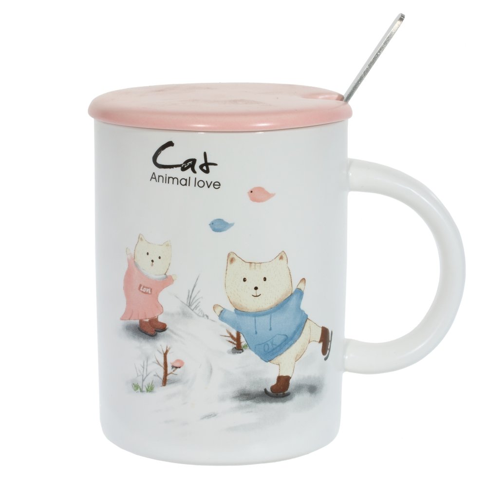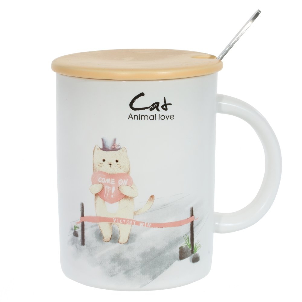 Кружка с крышкой и ложкой, 450 мл, l12 w8,5 h11 см, 4в..