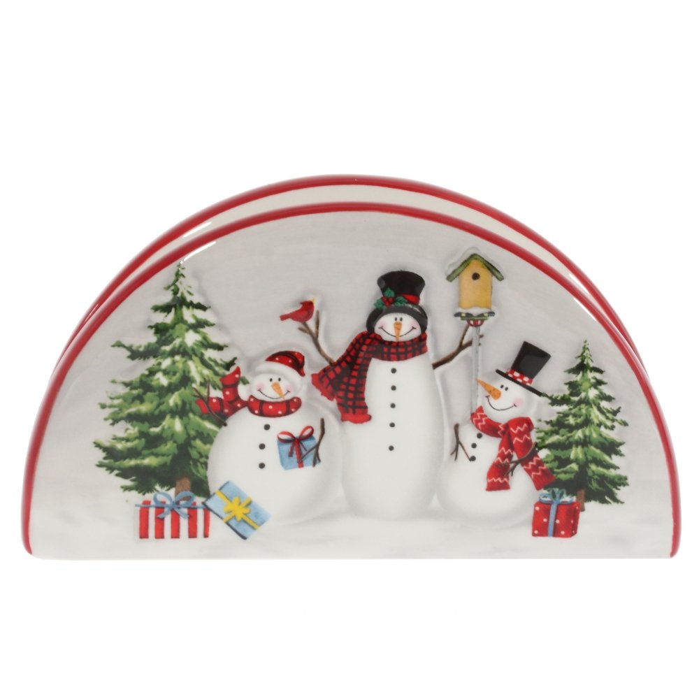 Салфетница лесные снеговики, L13 W4,5 H7 см