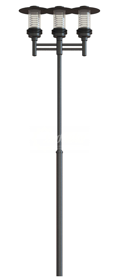 Уличный фонарь «техно - 1» 4,5 м. Подробные характеристики Материалы: Тумба, стойка и кронштейн: Сталь. Покрыты порошковой полимерной краской. Возможность выбора цвета по каталогу RAL. Соединительные и декоративные элементы: Сталь. Технические характеристики: Источник света: Патрон E-27 под лампу накаливания до 150 Вт, либо энергосберегающую лампу. Возможна комплектация ПРА под Nat70, Nat100, ДРЛ80, ДРЛ125 и источником света. Возможно комплектование светодиодными модулями. Высота: от 4,0 до 5,0 м Монтаж столба на объекте производится путем бетонирования стойки или закладной детали, с последующим креплением столба болтовым соединением. Фонарный столб имеет ревизионное окошко для обслуживания электрической цепи. Закладной фундамент заказывается отдельно и в цену не входит. О модели Используется для освещения парков, скверов, коттеджных поселков, прилегающих территорий зданий. Установка производится путем бетонирования закладной детали (глубина 1,5 метра) с последующим креплением стойки болтовым соединением.