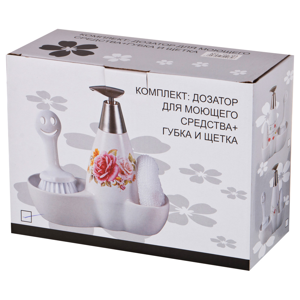 Комплект:дозатор для моющего средства 500 мл.+губка и щетка 20*9*18 см.