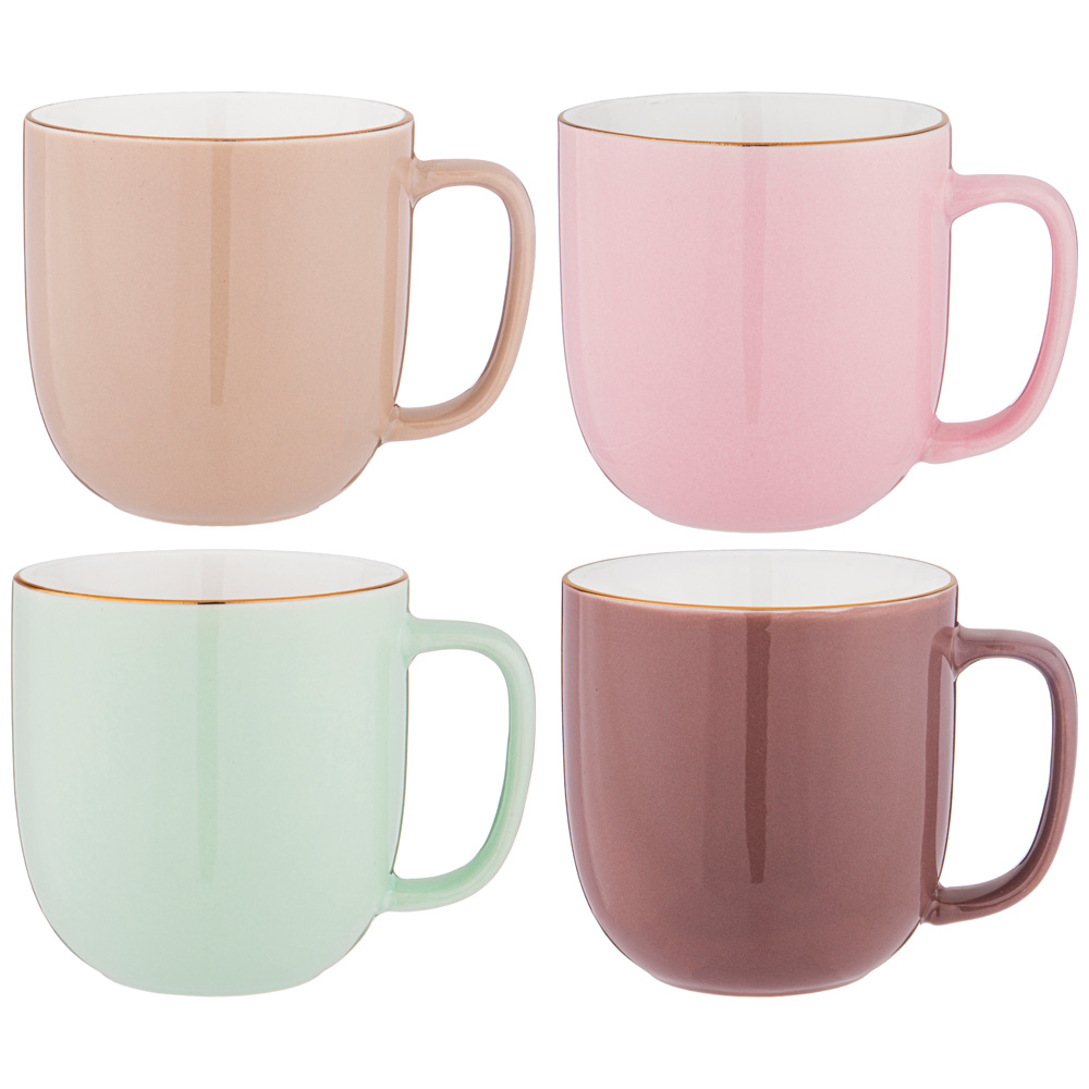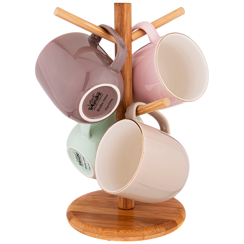 Набор из 4 кружек на деревянной подставке Lefard Break Time 310 мл пастель
