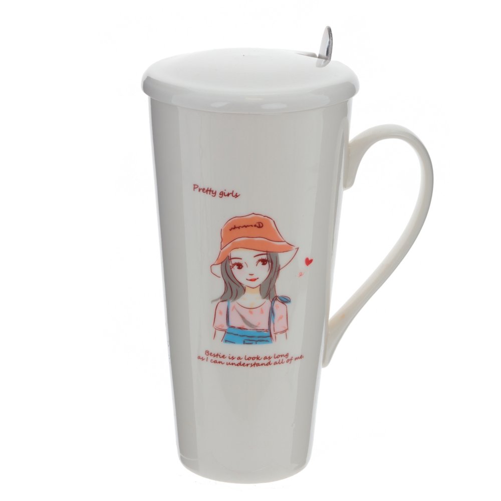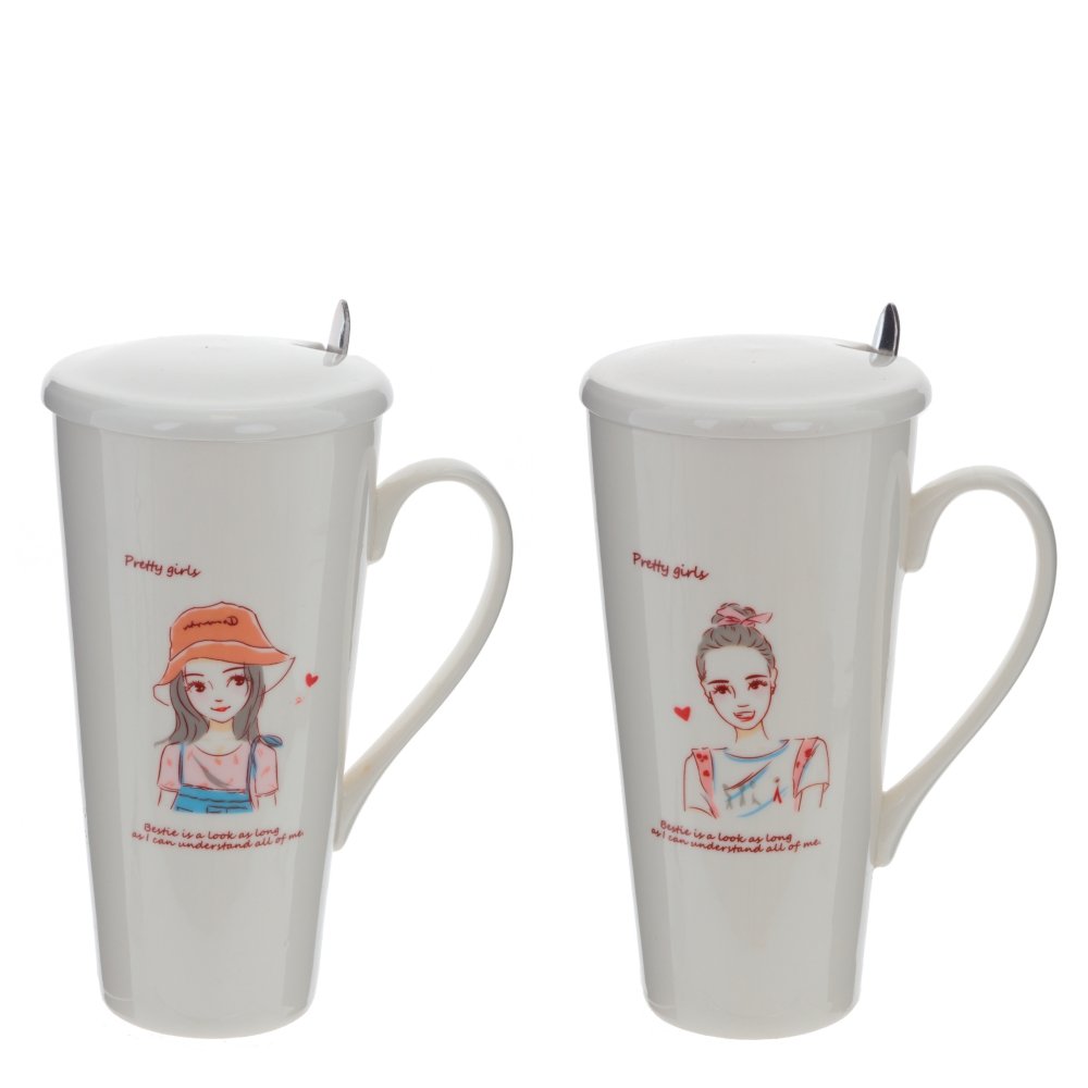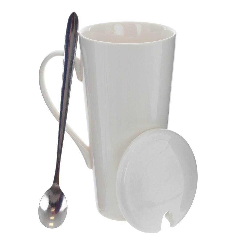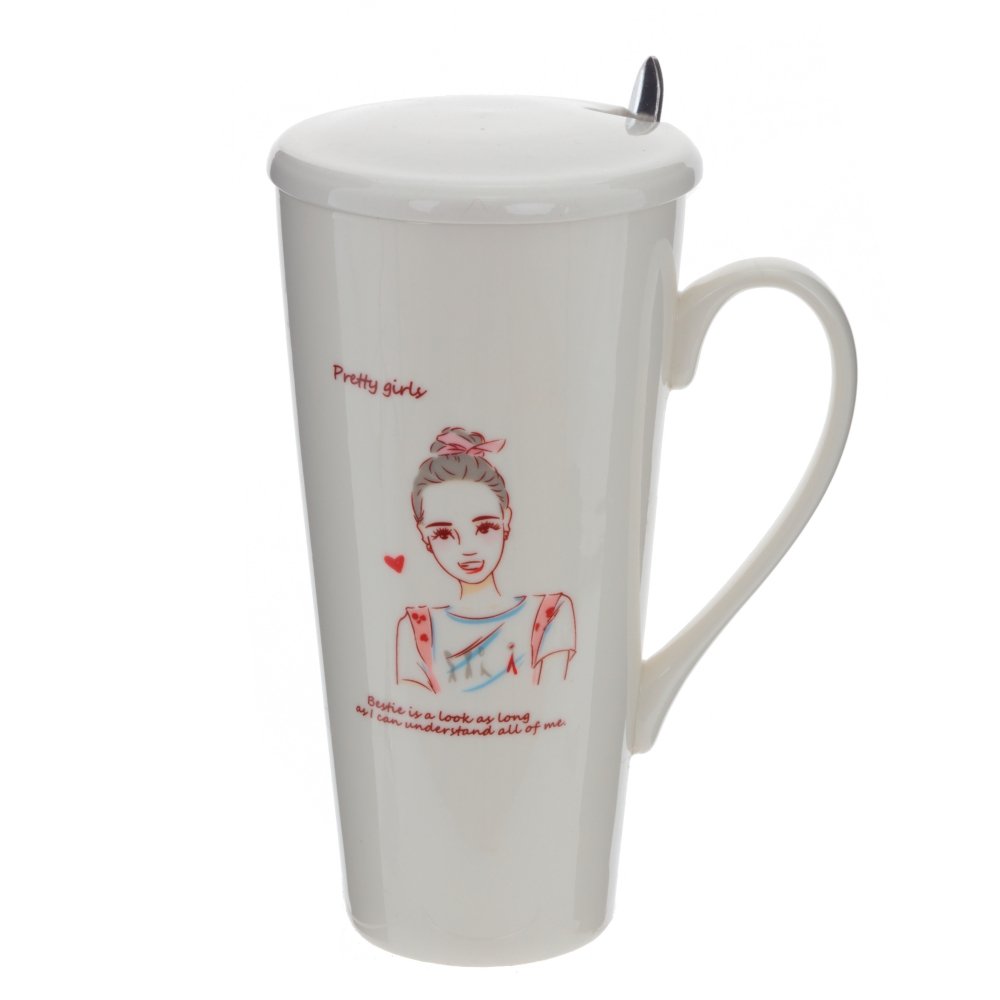 Кружка с крышкой и ложкой, 450 мл, L12 W9 H17 см, 2в.