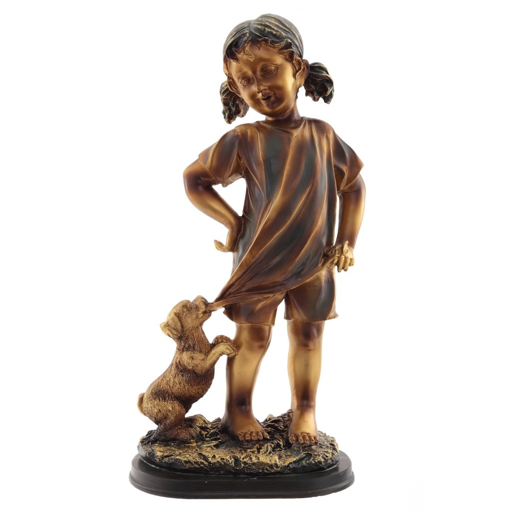 Фигурка декоративная девочка с собачкой, L20 W12 H41 см